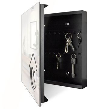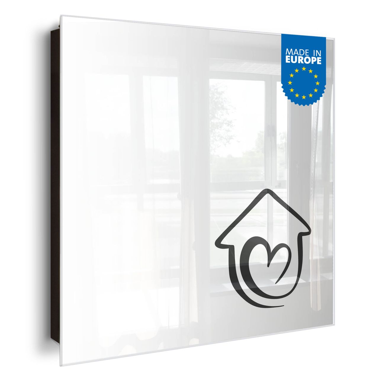 Bringe Ordnung und Eleganz in deinen Eingangsbereich mit dem banjado Schlüsselkasten Motiv Motiv Herzhaus. Die moderne Schlüsselbox kombiniert funktionales Design mit hochwertiger Verarbeitung und wird so zu einem echten Hingucker in Flur, Büro oder Ferienwohnung. ✅ Stilvolle Schlüsselaufbewahrung mit Glasfront im Motiv Motiv Herzhaus Der Design-Schlüsselkasten Motiv Motiv Herzhaus bietet Platz für bis zu 50 Schlüssel, die auf 5 stabilen Reihen mit je 10 Haken übersichtlich verstaut werden. Mit seinen kompakten Maßen von 30 x 30 x 5 cm passt die Schlüsselbox perfekt auch in kleinere Räume. Der schwarz lackierte Stahlkorpus mit rechts angeschlagenem Türscharnier harmoniert mit der Glasfront und fügt sich nahtlos in jedes Wohnambiente ein. Ob als Schlüsselorganizer für Zuhause oder als praktische Lösung für Büros, Praxen und Gewerbe, der banjado Schlüsselkasten sorgt für Ordnung und Übersicht. Dank der magnetischen, mit Kreidestiften beschreibbaren Glasfront kannst du Notizen anheften oder Termine direkt auf der Oberfläche festhalten. Die Schlüsselbox Motiv Motiv Herzhaus zur Wandmontage wird inklusive Befestigungsmaterial geliefert und ist schnell angebracht. So hast du deine Schlüssel jederzeit griffbereit und zugleich stilvoll verstaut. Mit diesem banjado Schlüsselkasten Motiv Motiv Herzhaus kombinierst du praktische Aufbewahrung mit stilvollem Wohndesign. Ob privat oder geschäftlich, die Schlüsselbox sorgt für mehr Ordnung, Übersicht und ein wohnliches Ambiente.Vorteile im Überblick