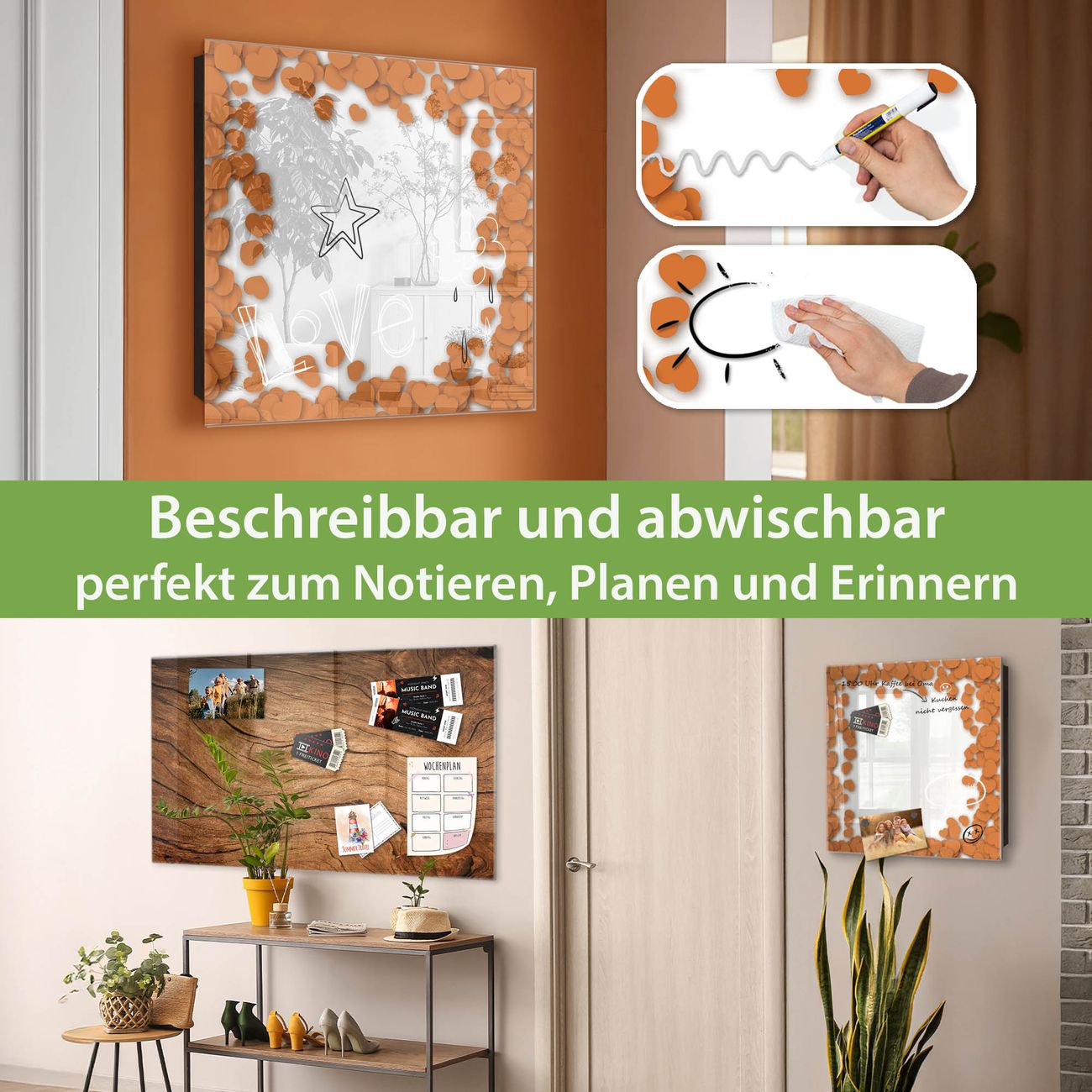 ✅ Magnetisch und mit Kreidestift beschreibbar, gehärtetes Glas, links angeschlagene TürOrdnung und Design in einem
