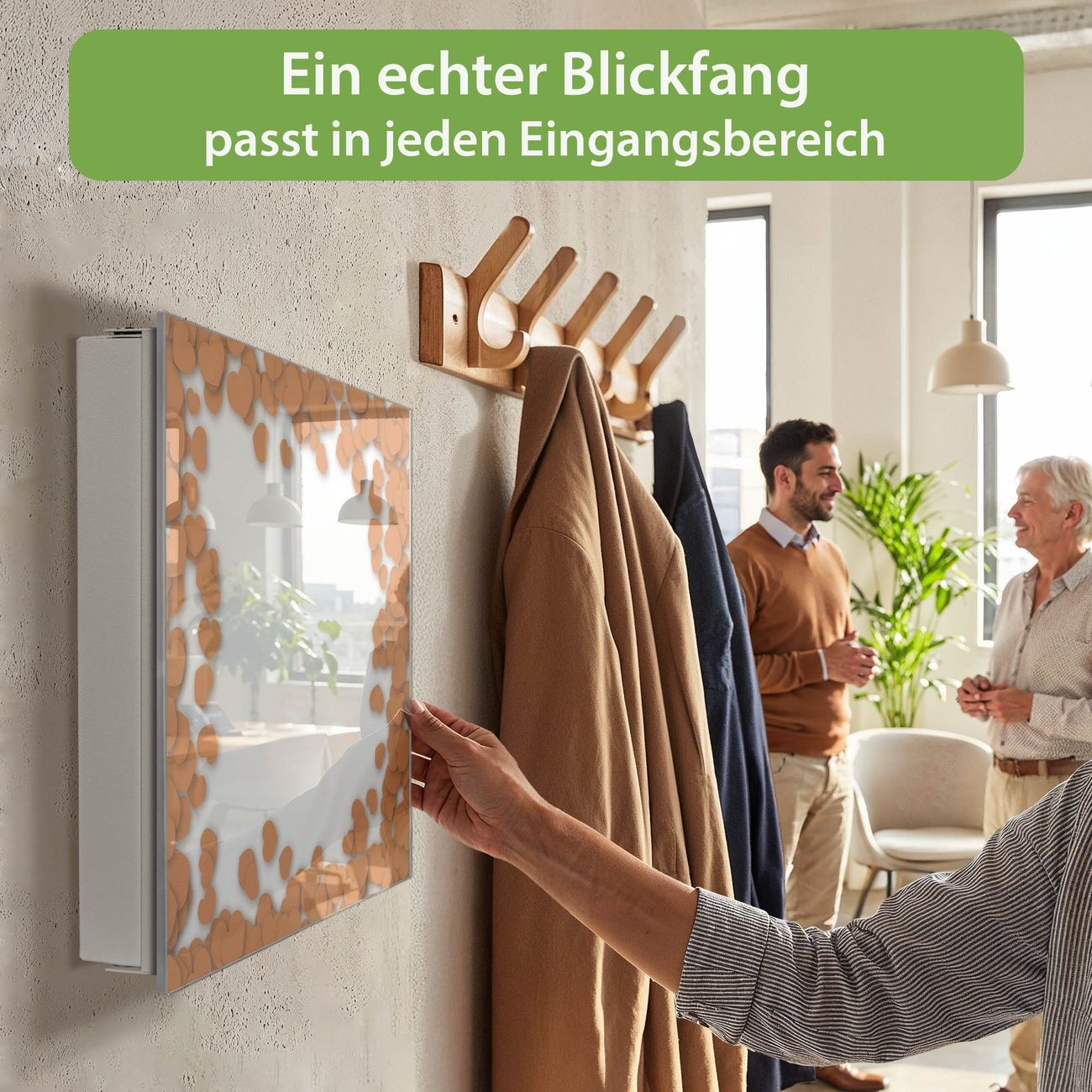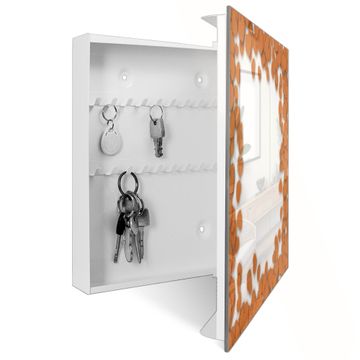 Bringe Ordnung und Eleganz in deinen Eingangsbereich mit dem banjado Schlüsselkasten Motiv Motiv Herzrahmen in Orange. Die moderne Schlüsselbox kombiniert funktionales Design mit hochwertiger Verarbeitung und wird so zu einem echten Hingucker in Flur, Büro oder Ferienwohnung. ✅ Stilvolle Schlüsselaufbewahrung mit Glasfront im Motiv Motiv Herzrahmen in Orange Der Design-Schlüsselkasten Motiv Motiv Herzrahmen in Orange bietet Platz für bis zu 50 Schlüssel, die auf 5 stabilen Reihen mit je 10 Haken übersichtlich verstaut werden. Mit seinen kompakten Maßen von 30 x 30 x 5 cm passt die Schlüsselbox perfekt auch in kleinere Räume. Der weiß lackierte Stahlkorpus mit rechts angeschlagenem Türscharnier harmoniert mit der Glasfront und fügt sich nahtlos in jedes Wohnambiente ein. Ob als Schlüsselorganizer für Zuhause oder als praktische Lösung für Büros, Praxen und Gewerbe, der banjado Schlüsselkasten sorgt für Ordnung und Übersicht. Dank der magnetischen, mit Kreidestiften beschreibbaren Glasfront kannst du Notizen anheften oder Termine direkt auf der Oberfläche festhalten. Die Schlüsselbox Motiv Motiv Herzrahmen in Orange zur Wandmontage wird inklusive Befestigungsmaterial geliefert und ist schnell angebracht. So hast du deine Schlüssel jederzeit griffbereit und zugleich stilvoll verstaut. Mit diesem banjado Schlüsselkasten Motiv Motiv Herzrahmen in Orange kombinierst du praktische Aufbewahrung mit stilvollem Wohndesign. Ob privat oder geschäftlich, die Schlüsselbox sorgt für mehr Ordnung, Übersicht und ein wohnliches Ambiente.Vorteile im Überblick