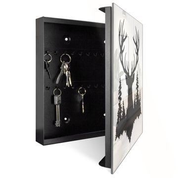 Schlüsselkasten Glas Motiv Hirsch im Wald Silhouette