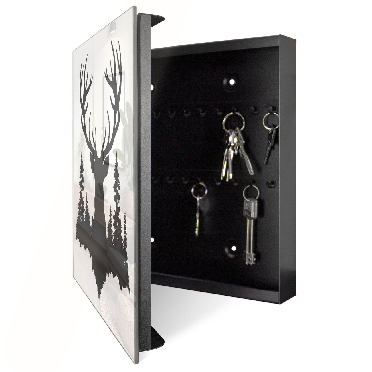 Schlüsselkasten Glas Motiv Hirsch im Wald