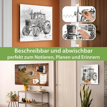 Bringe Ordnung und Eleganz in deinen Eingangsbereich mit dem banjado Schlüsselkasten Motiv Motiv Historischer Traktor. Die moderne Schlüsselbox kombiniert funktionales Design mit hochwertiger Verarbeitung und wird so zu einem echten Hingucker in Flur, Büro oder Ferienwohnung. ✅ Stilvolle Schlüsselaufbewahrung mit Glasfront im Motiv Motiv Historischer Traktor Der Design-Schlüsselkasten Motiv Motiv Historischer Traktor bietet Platz für bis zu 50 Schlüssel, die auf 5 stabilen Reihen mit je 10 Haken übersichtlich verstaut werden. Mit seinen kompakten Maßen von 30 x 30 x 5 cm passt die Schlüsselbox perfekt auch in kleinere Räume. Der schwarz lackierte Stahlkorpus mit rechts angeschlagenem Türscharnier harmoniert mit der Glasfront und fügt sich nahtlos in jedes Wohnambiente ein. Ob als Schlüsselorganizer für Zuhause oder als praktische Lösung für Büros, Praxen und Gewerbe, der banjado Schlüsselkasten sorgt für Ordnung und Übersicht. Dank der magnetischen, mit Kreidestiften beschreibbaren Glasfront kannst du Notizen anheften oder Termine direkt auf der Oberfläche festhalten. Die Schlüsselbox Motiv Motiv Historischer Traktor zur Wandmontage wird inklusive Befestigungsmaterial geliefert und ist schnell angebracht. So hast du deine Schlüssel jederzeit griffbereit und zugleich stilvoll verstaut. Mit diesem banjado Schlüsselkasten Motiv Motiv Historischer Traktor kombinierst du praktische Aufbewahrung mit stilvollem Wohndesign. Ob privat oder geschäftlich, die Schlüsselbox sorgt für mehr Ordnung, Übersicht und ein wohnliches Ambiente.Vorteile im Überblick