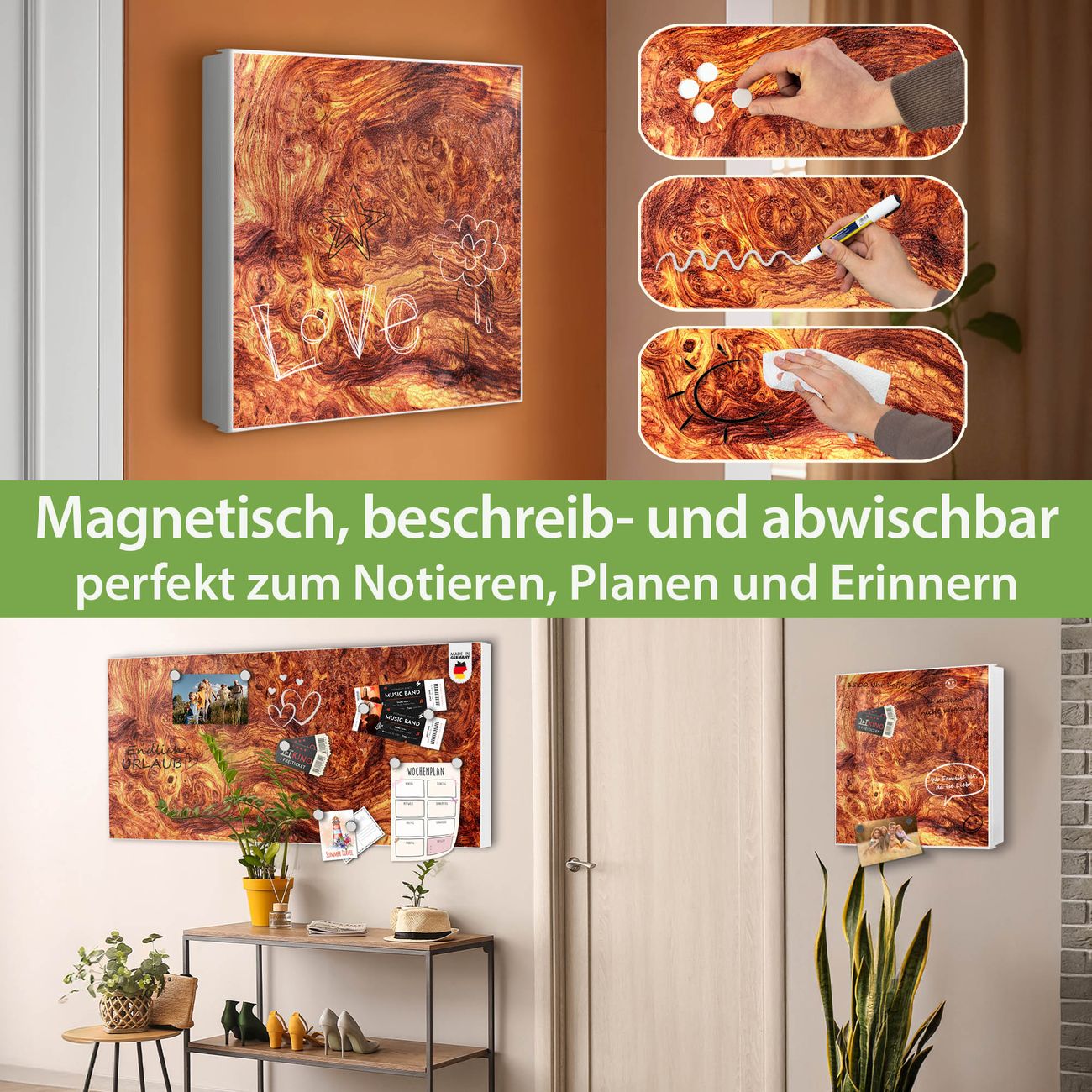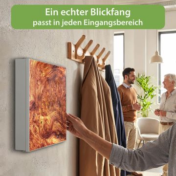 Bringe Ordnung und Eleganz in deinen Eingangsbereich mit dem banjado Schlüsselkasten Motiv Motiv Holz Gemasert Afzelia. Die moderne Schlüsselbox kombiniert funktionales Design mit hochwertiger Verarbeitung und wird so zu einem echten Hingucker in Flur, Büro oder Ferienwohnung. ✅ Stilvolle Schlüsselaufbewahrung mit Motiv Motiv Holz Gemasert Afzelia Der Design-Schlüsselkasten Motiv Motiv Holz Gemasert Afzelia bietet Platz für bis zu 32 Schlüssel, die auf 4 stabilen Reihen mit je 8 Haken übersichtlich verstaut werden. Mit seinen kompakten Maßen von 30 x 30 x 5 cm passt die Schlüsselbox perfekt auch in kleinere Räume. Der weiß lackierte Stahlkorpus mit rechts angeschlagenem Türscharnier harmoniert mit gedruckten Folie auf der Front und fügt sich nahtlos in jedes Wohnambiente ein. Ob als Schlüsselorganizer für Zuhause oder als praktische Lösung für Büros, Praxen und Gewerbe, der banjado Schlüsselkasten sorgt für Ordnung und Übersicht. Dank der magnetischen, mit Kreidestiften beschreibbaren Folie auf der Front kannst du Notizen anheften oder Termine direkt auf der Oberfläche festhalten. Die Schlüsselbox Motiv Motiv Holz Gemasert Afzelia zur Wandmontage wird inklusive Befestigungsmaterial geliefert und ist schnell angebracht. So hast du deine Schlüssel jederzeit griffbereit und zugleich stilvoll verstaut. Mit diesem banjado Schlüsselkasten Motiv Motiv Holz Gemasert Afzelia kombinierst du praktische Aufbewahrung mit stilvollem Wohndesign. Ob privat oder geschäftlich, die Schlüsselbox sorgt für mehr Ordnung, Übersicht und ein wohnliches Ambiente.Vorteile im Überblick