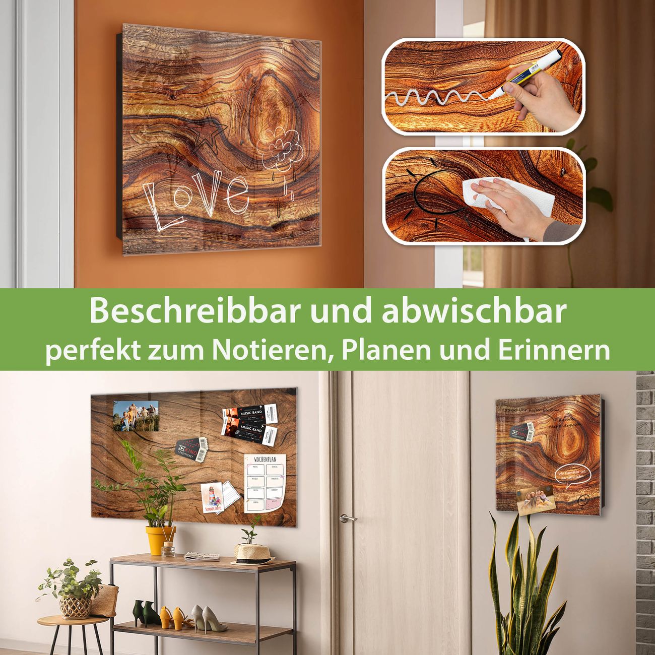 ✅ Magnetisch und mit Kreidestift beschreibbar, gehärtetes Glas, rechts angeschlagene TürOrdnung und Design in einem