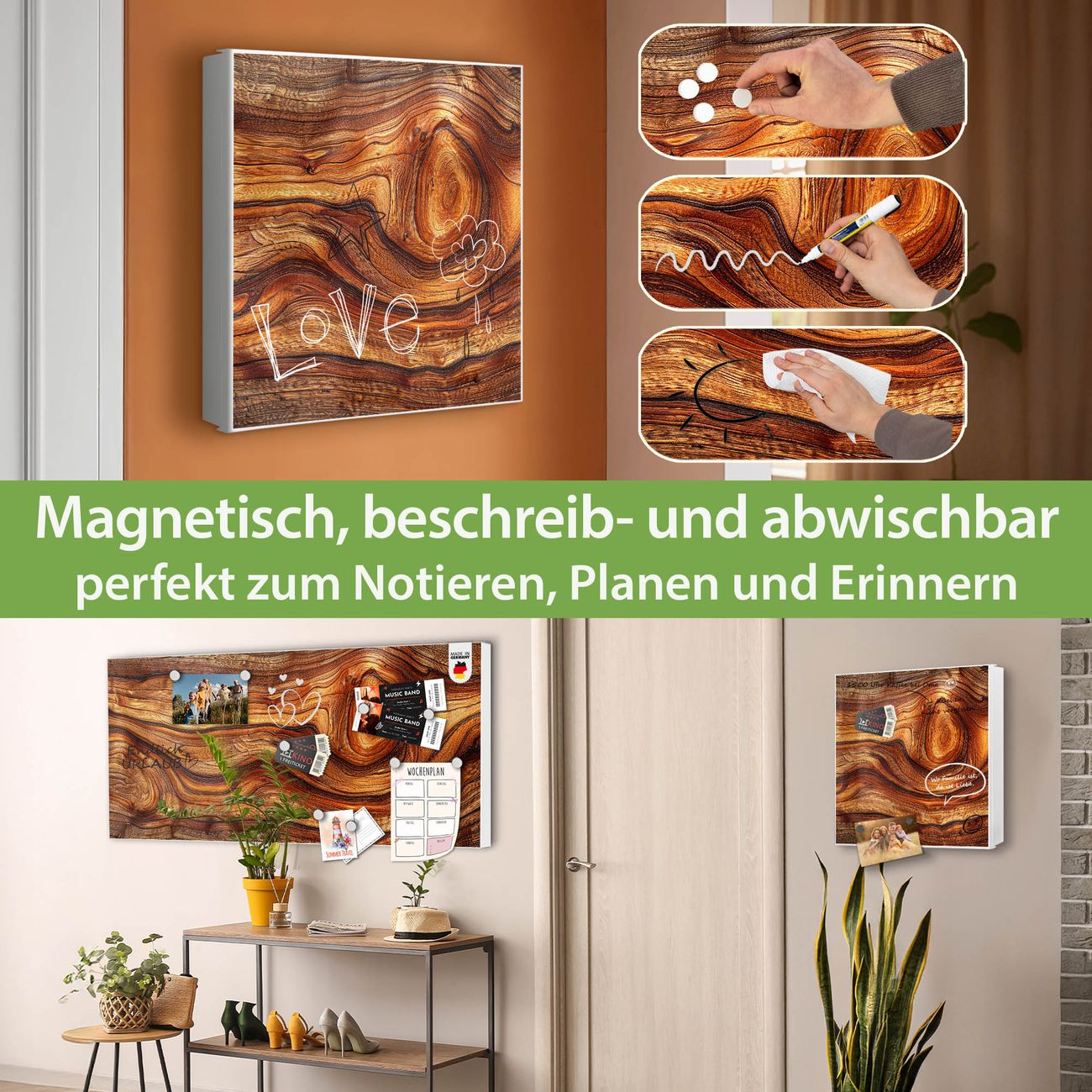 Bringe Ordnung und Eleganz in deinen Eingangsbereich mit dem banjado Schlüsselkasten Motiv Motiv Holz Gemasert Astloch. Die moderne Schlüsselbox kombiniert funktionales Design mit hochwertiger Verarbeitung und wird so zu einem echten Hingucker in Flur, Büro oder Ferienwohnung. ✅ Stilvolle Schlüsselaufbewahrung mit Motiv Motiv Holz Gemasert Astloch Der Design-Schlüsselkasten Motiv Motiv Holz Gemasert Astloch bietet Platz für bis zu 32 Schlüssel, die auf 4 stabilen Reihen mit je 8 Haken übersichtlich verstaut werden. Mit seinen kompakten Maßen von 30 x 30 x 5 cm passt die Schlüsselbox perfekt auch in kleinere Räume. Der weiß lackierte Stahlkorpus mit rechts angeschlagenem Türscharnier harmoniert mit gedruckten Folie auf der Front und fügt sich nahtlos in jedes Wohnambiente ein. Ob als Schlüsselorganizer für Zuhause oder als praktische Lösung für Büros, Praxen und Gewerbe, der banjado Schlüsselkasten sorgt für Ordnung und Übersicht. Dank der magnetischen, mit Kreidestiften beschreibbaren Folie auf der Front kannst du Notizen anheften oder Termine direkt auf der Oberfläche festhalten. Die Schlüsselbox Motiv Motiv Holz Gemasert Astloch zur Wandmontage wird inklusive Befestigungsmaterial geliefert und ist schnell angebracht. So hast du deine Schlüssel jederzeit griffbereit und zugleich stilvoll verstaut. Mit diesem banjado Schlüsselkasten Motiv Motiv Holz Gemasert Astloch kombinierst du praktische Aufbewahrung mit stilvollem Wohndesign. Ob privat oder geschäftlich, die Schlüsselbox sorgt für mehr Ordnung, Übersicht und ein wohnliches Ambiente.Vorteile im Überblick