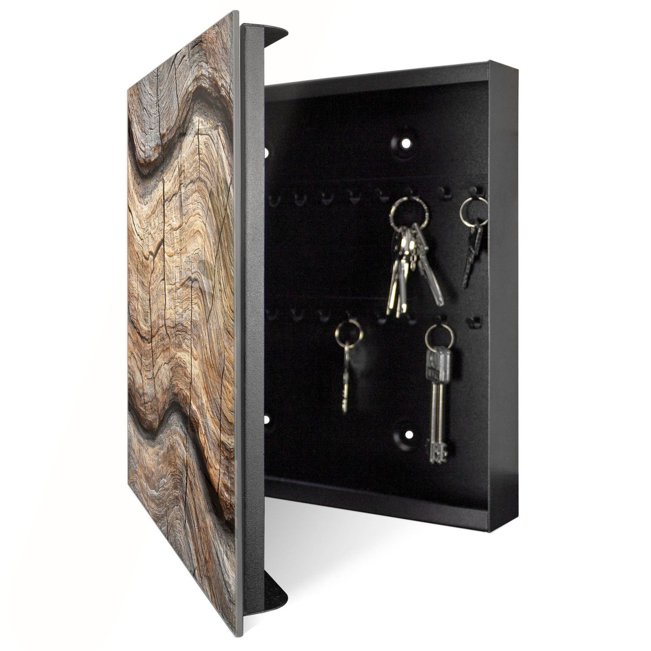 Schlüsselkasten Glas Motiv Holz Gemasert Fluss Grau