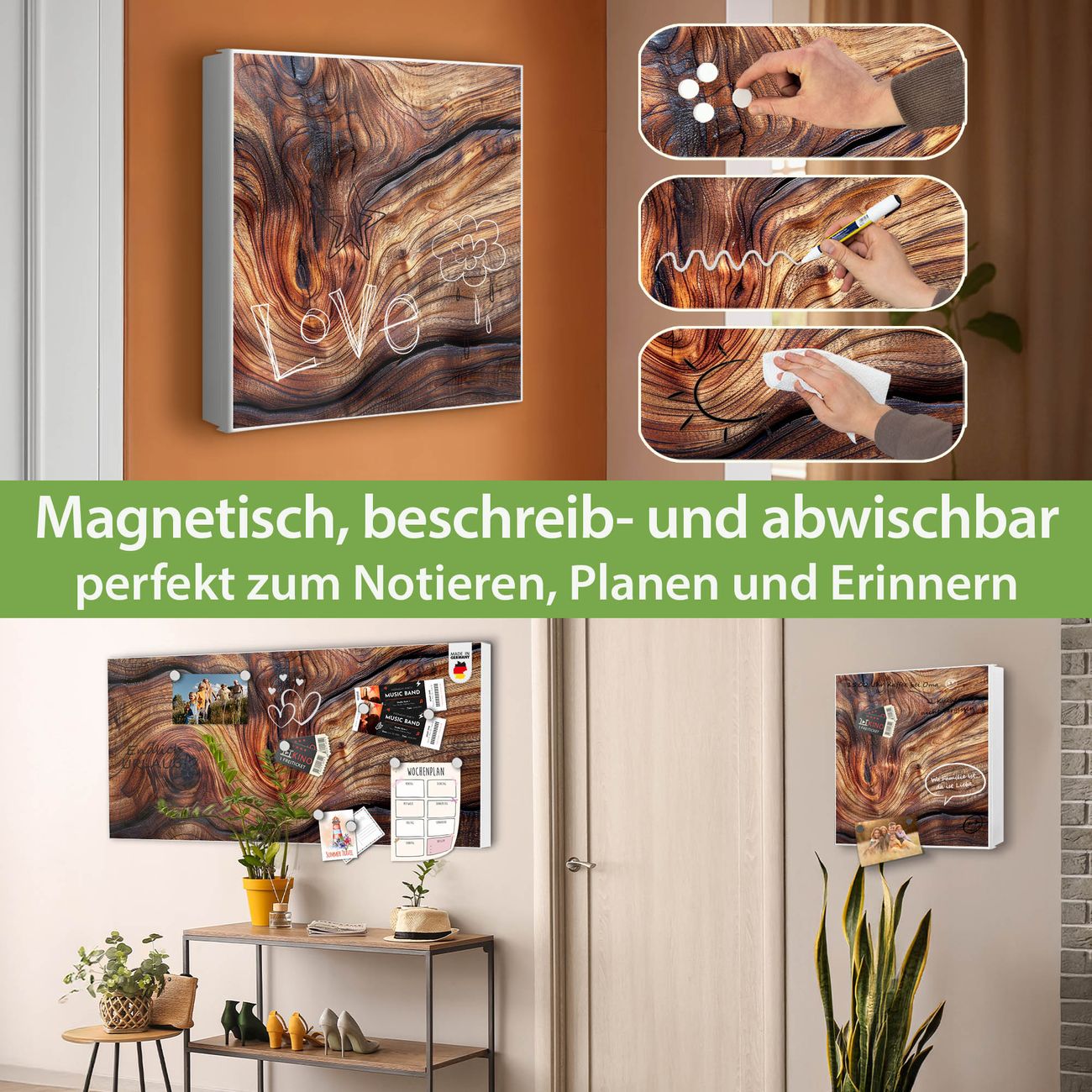 Bringe Ordnung und Eleganz in deinen Eingangsbereich mit dem banjado Schlüsselkasten Motiv Motiv Holz Gemasert Kurve. Die moderne Schlüsselbox kombiniert funktionales Design mit hochwertiger Verarbeitung und wird so zu einem echten Hingucker in Flur, Büro oder Ferienwohnung. ✅ Stilvolle Schlüsselaufbewahrung mit Motiv Motiv Holz Gemasert Kurve Der Design-Schlüsselkasten Motiv Motiv Holz Gemasert Kurve bietet Platz für bis zu 32 Schlüssel, die auf 4 stabilen Reihen mit je 8 Haken übersichtlich verstaut werden. Mit seinen kompakten Maßen von 30 x 30 x 5 cm passt die Schlüsselbox perfekt auch in kleinere Räume. Der weiß lackierte Stahlkorpus mit rechts angeschlagenem Türscharnier harmoniert mit gedruckten Folie auf der Front und fügt sich nahtlos in jedes Wohnambiente ein. Ob als Schlüsselorganizer für Zuhause oder als praktische Lösung für Büros, Praxen und Gewerbe, der banjado Schlüsselkasten sorgt für Ordnung und Übersicht. Dank der magnetischen, mit Kreidestiften beschreibbaren Folie auf der Front kannst du Notizen anheften oder Termine direkt auf der Oberfläche festhalten. Die Schlüsselbox Motiv Motiv Holz Gemasert Kurve zur Wandmontage wird inklusive Befestigungsmaterial geliefert und ist schnell angebracht. So hast du deine Schlüssel jederzeit griffbereit und zugleich stilvoll verstaut. Mit diesem banjado Schlüsselkasten Motiv Motiv Holz Gemasert Kurve kombinierst du praktische Aufbewahrung mit stilvollem Wohndesign. Ob privat oder geschäftlich, die Schlüsselbox sorgt für mehr Ordnung, Übersicht und ein wohnliches Ambiente.Vorteile im Überblick