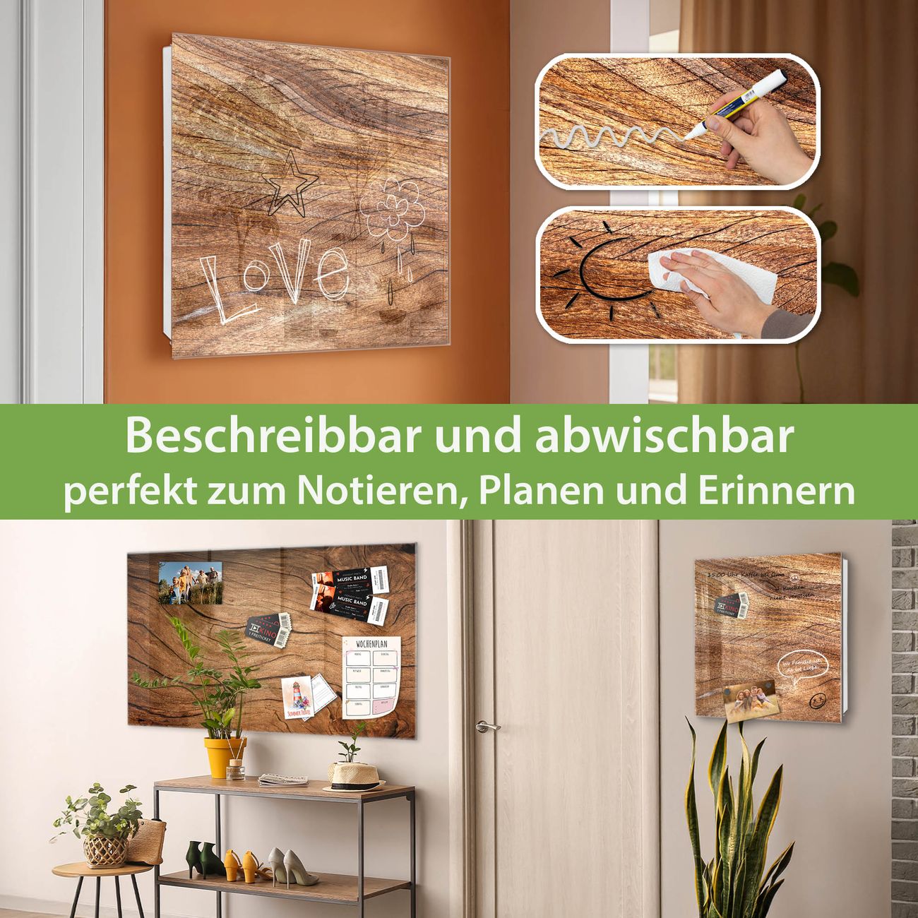 ✅ Magnetisch und mit Kreidestift beschreibbar, gehärtetes Glas, rechts angeschlagene TürOrdnung und Design in einem