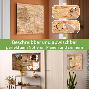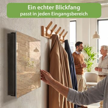 Bringe Ordnung und Eleganz in deinen Eingangsbereich mit dem banjado Schlüsselkasten Motiv Holz Struktur Honig. Die moderne Schlüsselbox kombiniert funktionales Design mit hochwertiger Verarbeitung und wird so zu einem echten Hingucker in Flur, Büro oder Ferienwohnung. ✅ Stilvolle Schlüsselaufbewahrung mit Glasfront im Motiv Motiv Holz Struktur Honig Der Design-Schlüsselkasten Motiv Holz Struktur Honig bietet Platz für bis zu 50 Schlüssel, die auf 5 stabilen Reihen mit je 10 Haken übersichtlich verstaut werden. Mit seinen kompakten Maßen von 30 x 30 x 5 cm passt die Schlüsselbox perfekt auch in kleinere Räume. Der schwarz lackierte Stahlkorpus mit rechts angeschlagenem Türscharnier harmoniert mit der Glasfront und fügt sich nahtlos in jedes Wohnambiente ein. Ob als Schlüsselorganizer für Zuhause oder als praktische Lösung für Büros, Praxen und Gewerbe, der banjado Schlüsselkasten sorgt für Ordnung und Übersicht. Dank der magnetischen, mit Kreidestiften beschreibbaren Glasfront kannst du Notizen anheften oder Termine direkt auf der Oberfläche festhalten. Die Schlüsselbox Motiv Holz Struktur Honig zur Wandmontage wird inklusive Befestigungsmaterial geliefert und ist schnell angebracht. So hast du deine Schlüssel jederzeit griffbereit und zugleich stilvoll verstaut. Mit diesem banjado Schlüsselkasten Motiv Holz Struktur Honig kombinierst du praktische Aufbewahrung mit stilvollem Wohndesign. Ob privat oder geschäftlich, die Schlüsselbox sorgt für mehr Ordnung, Übersicht und ein wohnliches Ambiente.Vorteile im Überblick