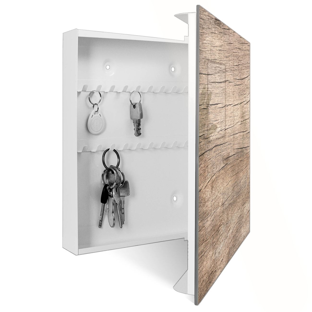 Schlüsselkasten Glas Motiv Holz Struktur Warmgrau