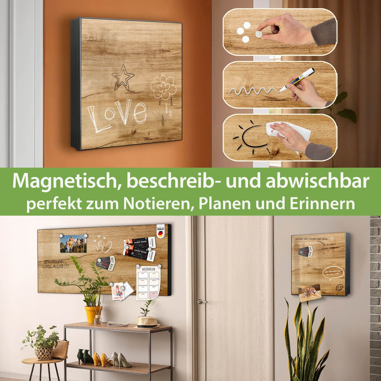 ✅ Magnetisch und mit Kreidestift beschreibbar, links angeschlagene TürOrdnung und Design in einem