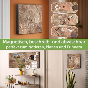 Bringe Ordnung und Eleganz in deinen Eingangsbereich mit dem banjado Schlüsselkasten Motiv Motiv Holzkreis mit Rissen. Die moderne Schlüsselbox kombiniert funktionales Design mit hochwertiger Verarbeitung und wird so zu einem echten Hingucker in Flur, Büro oder Ferienwohnung. ✅ Stilvolle Schlüsselaufbewahrung mit Motiv Motiv Holzkreis mit Rissen Der Design-Schlüsselkasten Motiv Motiv Holzkreis mit Rissen bietet Platz für bis zu 32 Schlüssel, die auf 4 stabilen Reihen mit je 8 Haken übersichtlich verstaut werden. Mit seinen kompakten Maßen von 30 x 30 x 5 cm passt die Schlüsselbox perfekt auch in kleinere Räume. Der schwarz lackierte Stahlkorpus mit links angeschlagenem Türscharnier harmoniert mit gedruckten Folie auf der Front und fügt sich nahtlos in jedes Wohnambiente ein. Ob als Schlüsselorganizer für Zuhause oder als praktische Lösung für Büros, Praxen und Gewerbe, der banjado Schlüsselkasten sorgt für Ordnung und Übersicht. Dank der magnetischen, mit Kreidestiften beschreibbaren Folie auf der Front kannst du Notizen anheften oder Termine direkt auf der Oberfläche festhalten. Die Schlüsselbox Motiv Motiv Holzkreis mit Rissen zur Wandmontage wird inklusive Befestigungsmaterial geliefert und ist schnell angebracht. So hast du deine Schlüssel jederzeit griffbereit und zugleich stilvoll verstaut. Mit diesem banjado Schlüsselkasten Motiv Motiv Holzkreis mit Rissen kombinierst du praktische Aufbewahrung mit stilvollem Wohndesign. Ob privat oder geschäftlich, die Schlüsselbox sorgt für mehr Ordnung, Übersicht und ein wohnliches Ambiente.Vorteile im Überblick