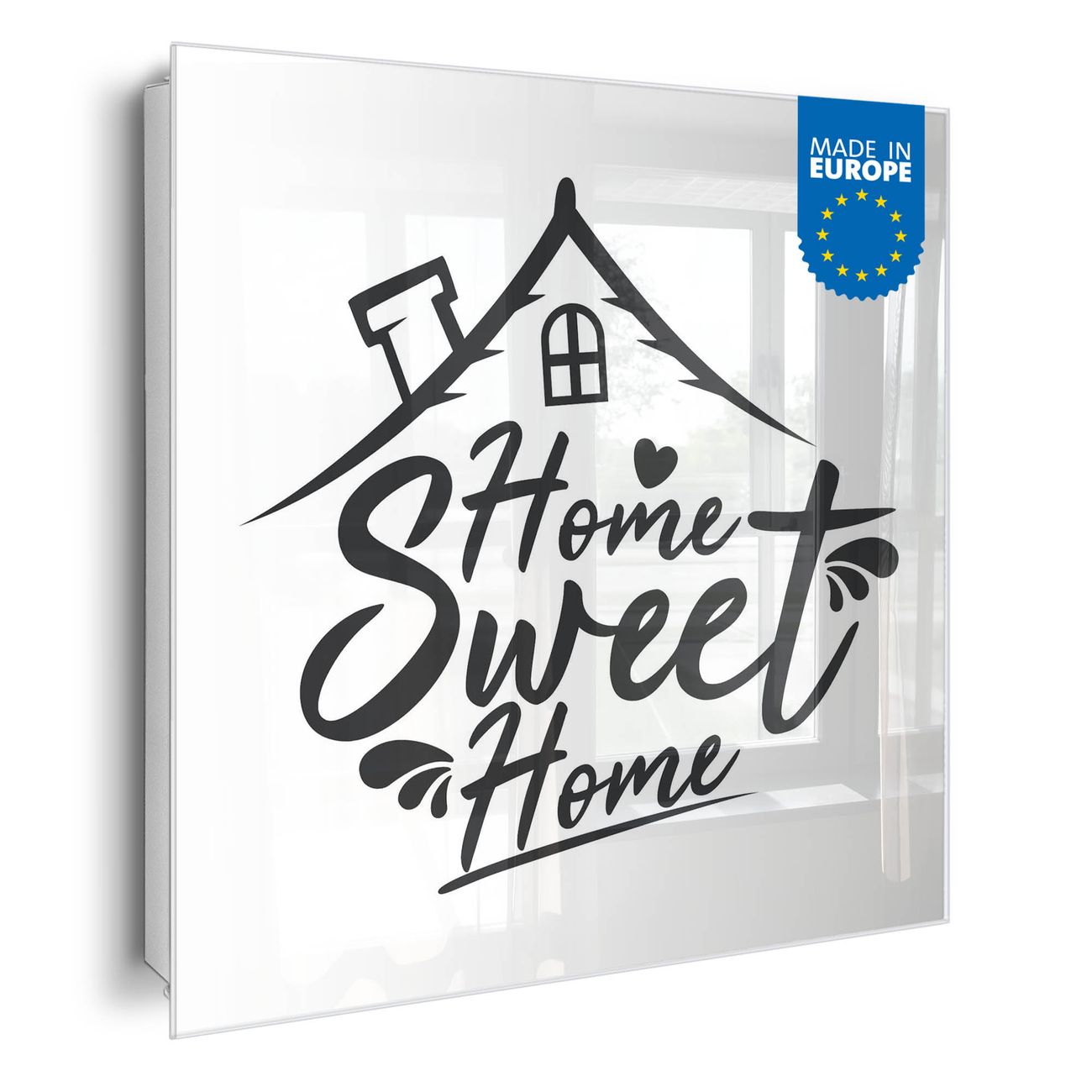 Bringe Ordnung und Eleganz in deinen Eingangsbereich mit dem banjado Schlüsselkasten Motiv Motiv Home sweet Home 4. Die moderne Schlüsselbox kombiniert funktionales Design mit hochwertiger Verarbeitung und wird so zu einem echten Hingucker in Flur, Büro oder Ferienwohnung. ✅ Stilvolle Schlüsselaufbewahrung mit Glasfront im Motiv Motiv Home sweet Home 4 Der Design-Schlüsselkasten Motiv Motiv Home sweet Home 4 bietet Platz für bis zu 50 Schlüssel, die auf 5 stabilen Reihen mit je 10 Haken übersichtlich verstaut werden. Mit seinen kompakten Maßen von 30 x 30 x 5 cm passt die Schlüsselbox perfekt auch in kleinere Räume. Der weiß lackierte Stahlkorpus mit rechts angeschlagenem Türscharnier harmoniert mit der Glasfront und fügt sich nahtlos in jedes Wohnambiente ein. Ob als Schlüsselorganizer für Zuhause oder als praktische Lösung für Büros, Praxen und Gewerbe, der banjado Schlüsselkasten sorgt für Ordnung und Übersicht. Dank der magnetischen, mit Kreidestiften beschreibbaren Glasfront kannst du Notizen anheften oder Termine direkt auf der Oberfläche festhalten. Die Schlüsselbox Motiv Motiv Home sweet Home 4 zur Wandmontage wird inklusive Befestigungsmaterial geliefert und ist schnell angebracht. So hast du deine Schlüssel jederzeit griffbereit und zugleich stilvoll verstaut. Mit diesem banjado Schlüsselkasten Motiv Motiv Home sweet Home 4 kombinierst du praktische Aufbewahrung mit stilvollem Wohndesign. Ob privat oder geschäftlich, die Schlüsselbox sorgt für mehr Ordnung, Übersicht und ein wohnliches Ambiente.Vorteile im Überblick