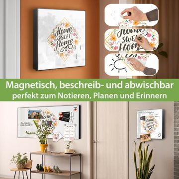Bringe Ordnung und Eleganz in deinen Eingangsbereich mit dem banjado Schlüsselkasten Motiv Motiv Home Sweet Home Schild. Die moderne Schlüsselbox kombiniert funktionales Design mit hochwertiger Verarbeitung und wird so zu einem echten Hingucker in Flur, Büro oder Ferienwohnung. ✅ Stilvolle Schlüsselaufbewahrung mit Motiv Motiv Home Sweet Home Schild Der Design-Schlüsselkasten Motiv Motiv Home Sweet Home Schild bietet Platz für bis zu 32 Schlüssel, die auf 4 stabilen Reihen mit je 8 Haken übersichtlich verstaut werden. Mit seinen kompakten Maßen von 30 x 30 x 5 cm passt die Schlüsselbox perfekt auch in kleinere Räume. Der schwarz lackierte Stahlkorpus mit links angeschlagenem Türscharnier harmoniert mit gedruckten Folie auf der Front und fügt sich nahtlos in jedes Wohnambiente ein. Ob als Schlüsselorganizer für Zuhause oder als praktische Lösung für Büros, Praxen und Gewerbe, der banjado Schlüsselkasten sorgt für Ordnung und Übersicht. Dank der magnetischen, mit Kreidestiften beschreibbaren Folie auf der Front kannst du Notizen anheften oder Termine direkt auf der Oberfläche festhalten. Die Schlüsselbox Motiv Motiv Home Sweet Home Schild zur Wandmontage wird inklusive Befestigungsmaterial geliefert und ist schnell angebracht. So hast du deine Schlüssel jederzeit griffbereit und zugleich stilvoll verstaut. Mit diesem banjado Schlüsselkasten Motiv Motiv Home Sweet Home Schild kombinierst du praktische Aufbewahrung mit stilvollem Wohndesign. Ob privat oder geschäftlich, die Schlüsselbox sorgt für mehr Ordnung, Übersicht und ein wohnliches Ambiente.Vorteile im Überblick