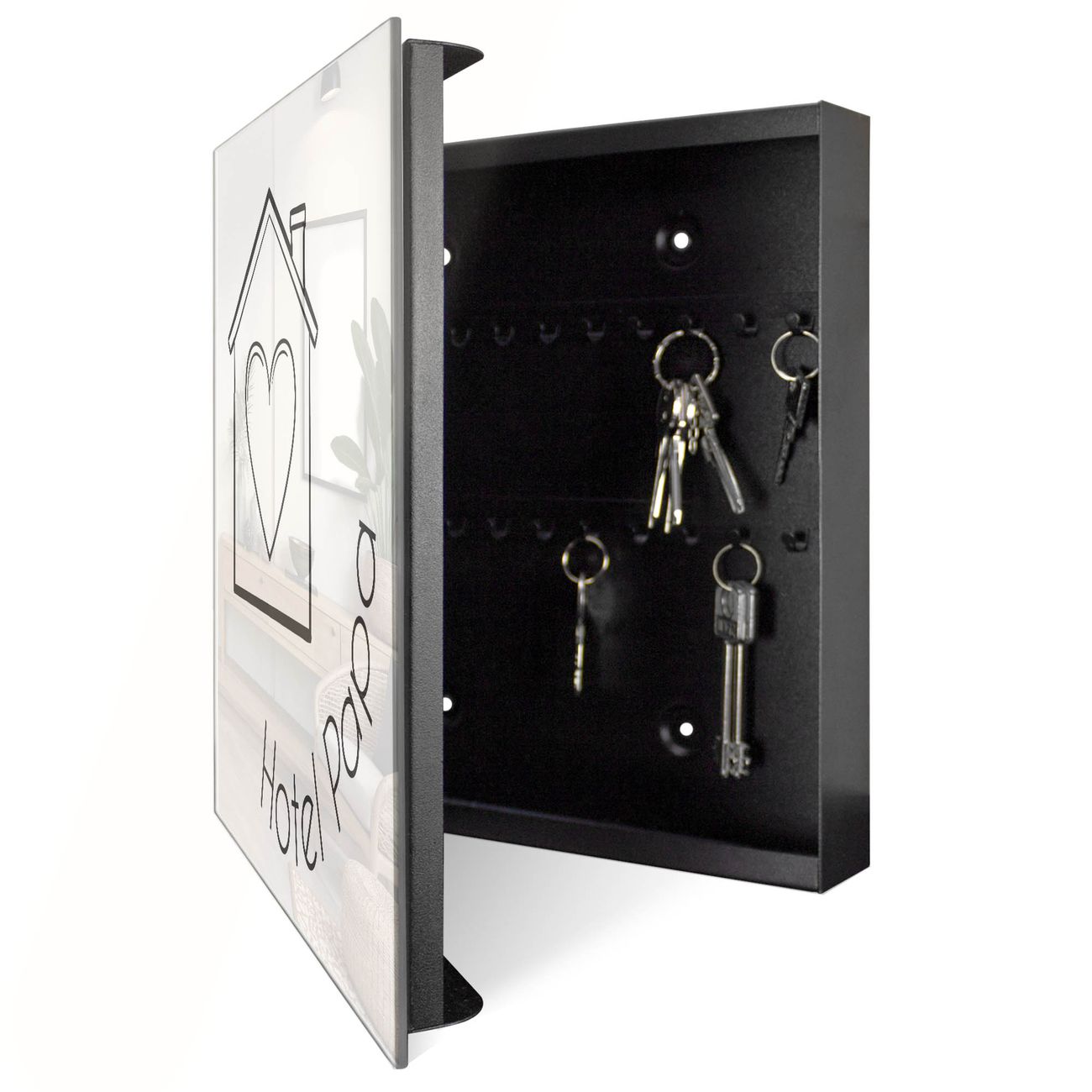 Schlüsselkasten Glas Motiv Hotel Papa Haus mit Herz 2