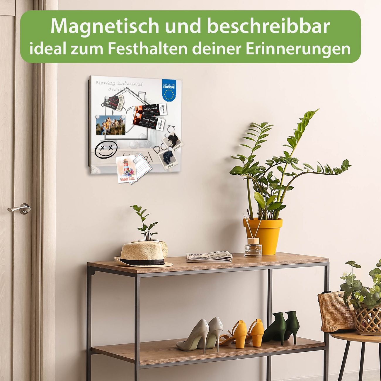 ✅ Magnetisch und mit Kreidestift beschreibbar, gehärtetes Glas, links angeschlagene TürOrdnung und Design in einem