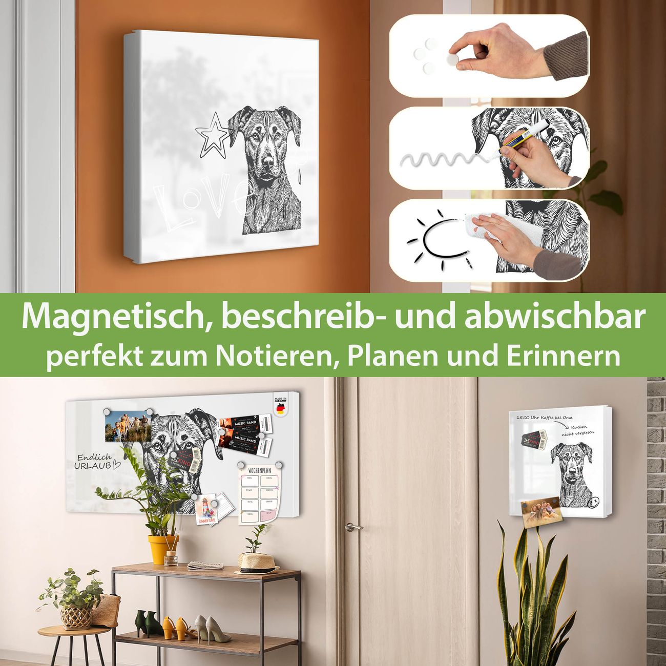 ✅ Magnetisch und mit Kreidestift beschreibbar, links angeschlagene TürOrdnung und Design in einem