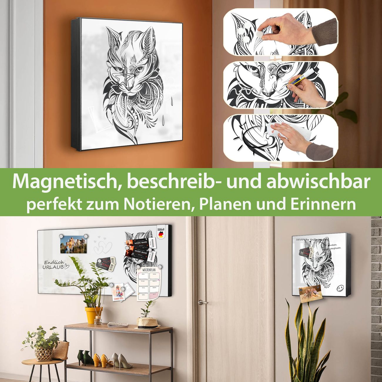✅ Magnetisch und mit Kreidestift beschreibbar, links angeschlagene TürOrdnung und Design in einem