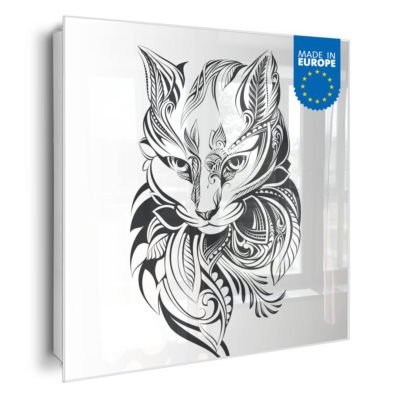 Bringe Ordnung und Eleganz in deinen Eingangsbereich mit dem banjado Schlüsselkasten Motiv Motiv Katze 2. Die moderne Schlüsselbox kombiniert funktionales Design mit hochwertiger Verarbeitung und wird so zu einem echten Hingucker in Flur, Büro oder Ferienwohnung. ✅ Stilvolle Schlüsselaufbewahrung mit Glasfront im Motiv Motiv Katze 2 Der Design-Schlüsselkasten Motiv Motiv Katze 2 bietet Platz für bis zu 50 Schlüssel, die auf 5 stabilen Reihen mit je 10 Haken übersichtlich verstaut werden. Mit seinen kompakten Maßen von 30 x 30 x 5 cm passt die Schlüsselbox perfekt auch in kleinere Räume. Der weiß lackierte Stahlkorpus mit rechts angeschlagenem Türscharnier harmoniert mit der Glasfront und fügt sich nahtlos in jedes Wohnambiente ein. Ob als Schlüsselorganizer für Zuhause oder als praktische Lösung für Büros, Praxen und Gewerbe, der banjado Schlüsselkasten sorgt für Ordnung und Übersicht. Dank der magnetischen, mit Kreidestiften beschreibbaren Glasfront kannst du Notizen anheften oder Termine direkt auf der Oberfläche festhalten. Die Schlüsselbox Motiv Motiv Katze 2 zur Wandmontage wird inklusive Befestigungsmaterial geliefert und ist schnell angebracht. So hast du deine Schlüssel jederzeit griffbereit und zugleich stilvoll verstaut. Mit diesem banjado Schlüsselkasten Motiv Motiv Katze 2 kombinierst du praktische Aufbewahrung mit stilvollem Wohndesign. Ob privat oder geschäftlich, die Schlüsselbox sorgt für mehr Ordnung, Übersicht und ein wohnliches Ambiente.Vorteile im Überblick