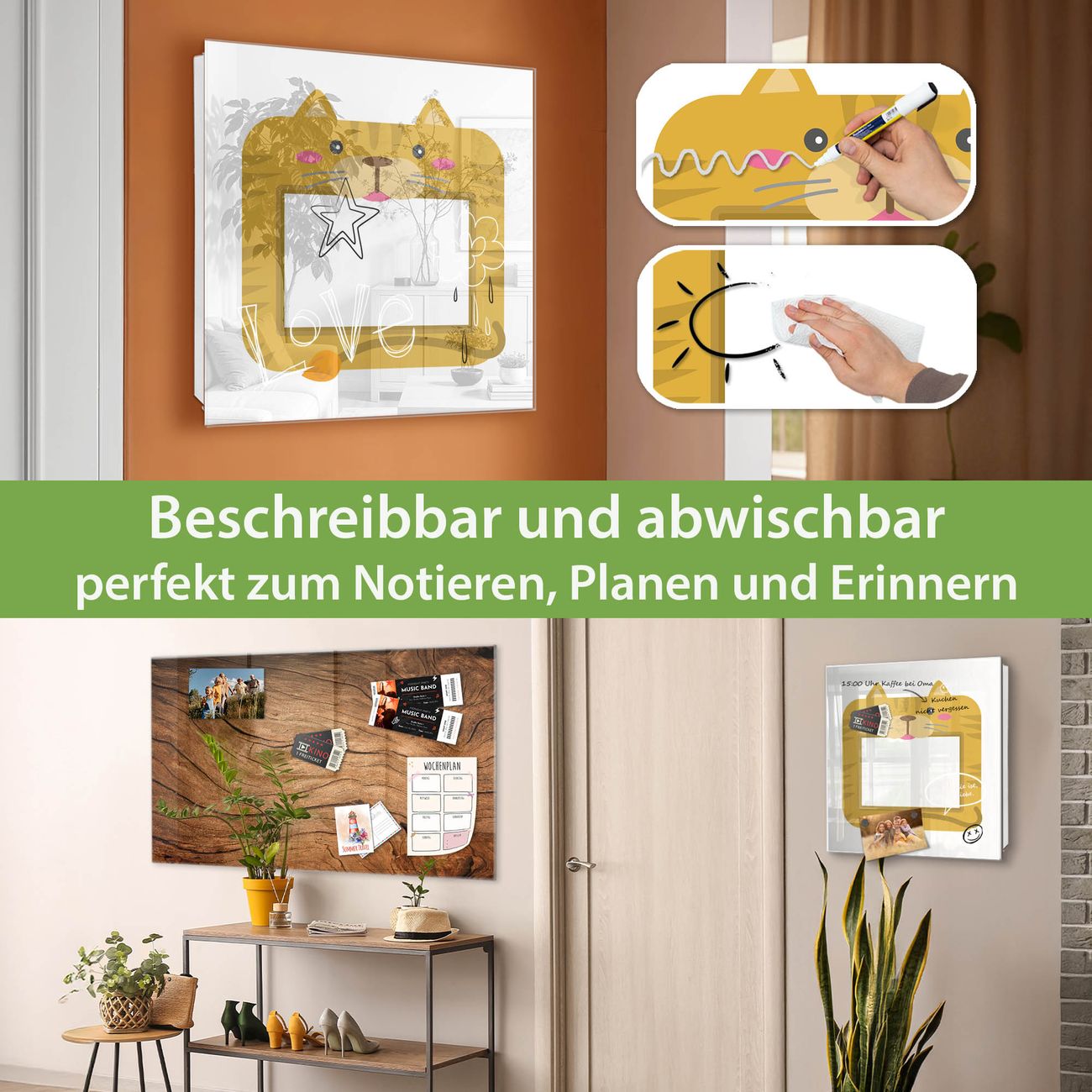 ✅ Magnetisch und mit Kreidestift beschreibbar, gehärtetes Glas, rechts angeschlagene TürOrdnung und Design in einem