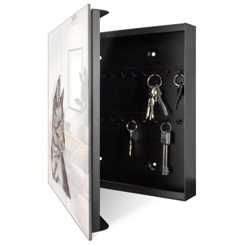 Schlüsselkasten Glas Motiv Katzenillustration