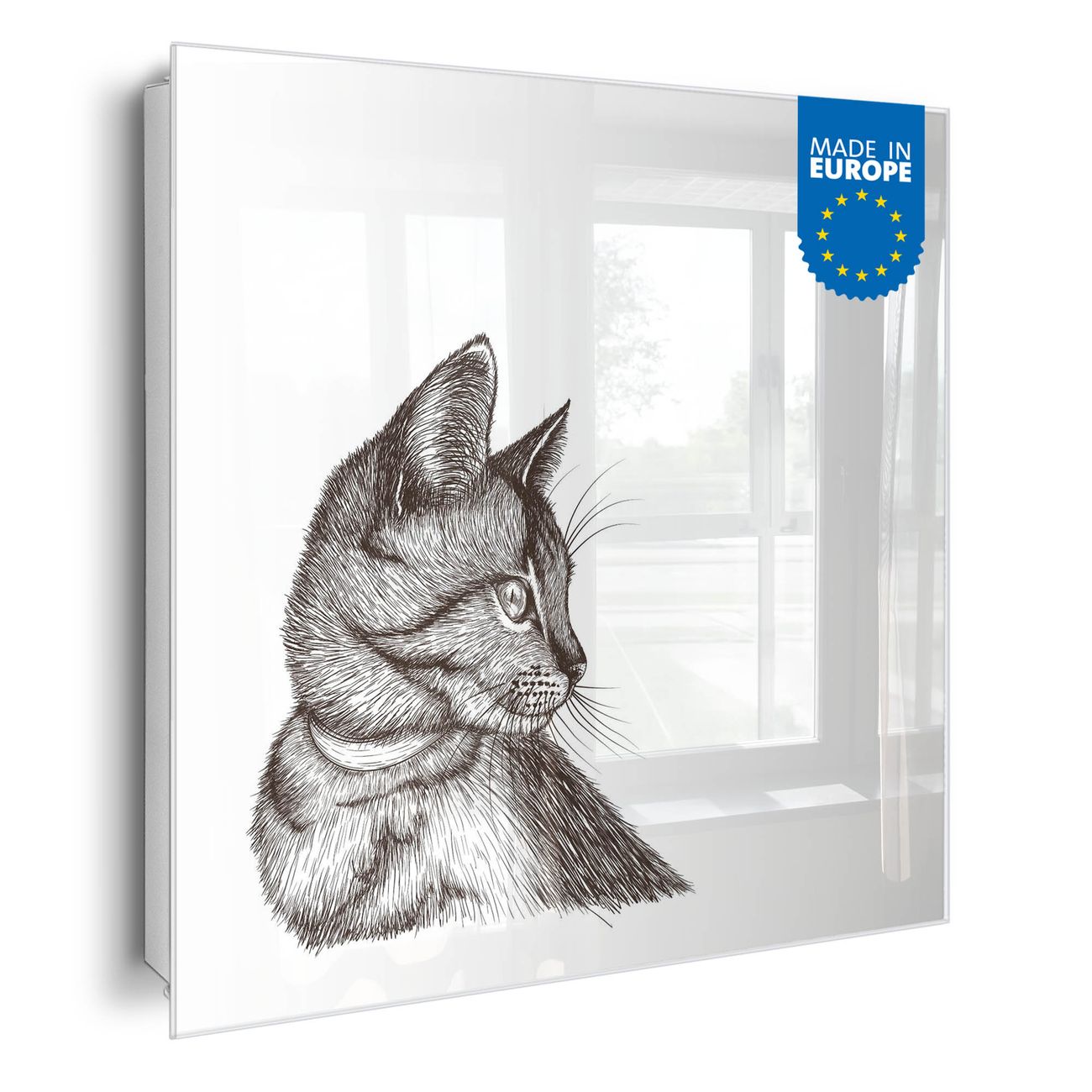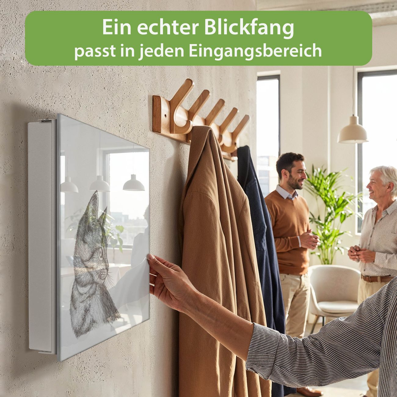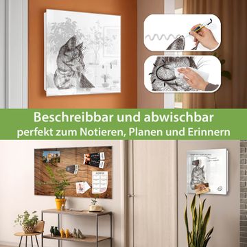 Bringe Ordnung und Eleganz in deinen Eingangsbereich mit dem banjado Schlüsselkasten Motiv Motiv Katzenillustration. Die moderne Schlüsselbox kombiniert funktionales Design mit hochwertiger Verarbeitung und wird so zu einem echten Hingucker in Flur, Büro oder Ferienwohnung. ✅ Stilvolle Schlüsselaufbewahrung mit Glasfront im Motiv Motiv Katzenillustration Der Design-Schlüsselkasten Motiv Motiv Katzenillustration bietet Platz für bis zu 50 Schlüssel, die auf 5 stabilen Reihen mit je 10 Haken übersichtlich verstaut werden. Mit seinen kompakten Maßen von 30 x 30 x 5 cm passt die Schlüsselbox perfekt auch in kleinere Räume. Der weiß lackierte Stahlkorpus mit rechts angeschlagenem Türscharnier harmoniert mit der Glasfront und fügt sich nahtlos in jedes Wohnambiente ein. Ob als Schlüsselorganizer für Zuhause oder als praktische Lösung für Büros, Praxen und Gewerbe, der banjado Schlüsselkasten sorgt für Ordnung und Übersicht. Dank der magnetischen, mit Kreidestiften beschreibbaren Glasfront kannst du Notizen anheften oder Termine direkt auf der Oberfläche festhalten. Die Schlüsselbox Motiv Motiv Katzenillustration zur Wandmontage wird inklusive Befestigungsmaterial geliefert und ist schnell angebracht. So hast du deine Schlüssel jederzeit griffbereit und zugleich stilvoll verstaut. Mit diesem banjado Schlüsselkasten Motiv Motiv Katzenillustration kombinierst du praktische Aufbewahrung mit stilvollem Wohndesign. Ob privat oder geschäftlich, die Schlüsselbox sorgt für mehr Ordnung, Übersicht und ein wohnliches Ambiente.Vorteile im Überblick