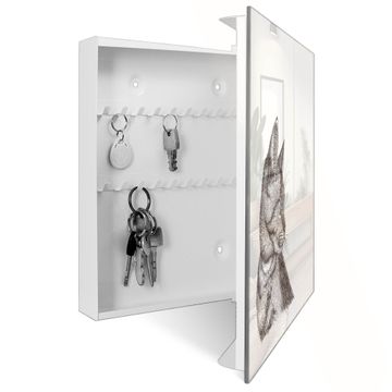 Schlüsselkasten Glas Motiv Katzenillustration