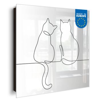 Bringe Ordnung und Eleganz in deinen Eingangsbereich mit dem banjado Schlüsselkasten Motiv Motiv Katzenliebe 2. Die moderne Schlüsselbox kombiniert funktionales Design mit hochwertiger Verarbeitung und wird so zu einem echten Hingucker in Flur, Büro oder Ferienwohnung. ✅ Stilvolle Schlüsselaufbewahrung mit Glasfront im Motiv Motiv Katzenliebe 2 Der Design-Schlüsselkasten Motiv Motiv Katzenliebe 2 bietet Platz für bis zu 50 Schlüssel, die auf 5 stabilen Reihen mit je 10 Haken übersichtlich verstaut werden. Mit seinen kompakten Maßen von 30 x 30 x 5 cm passt die Schlüsselbox perfekt auch in kleinere Räume. Der schwarz lackierte Stahlkorpus mit rechts angeschlagenem Türscharnier harmoniert mit der Glasfront und fügt sich nahtlos in jedes Wohnambiente ein. Ob als Schlüsselorganizer für Zuhause oder als praktische Lösung für Büros, Praxen und Gewerbe, der banjado Schlüsselkasten sorgt für Ordnung und Übersicht. Dank der magnetischen, mit Kreidestiften beschreibbaren Glasfront kannst du Notizen anheften oder Termine direkt auf der Oberfläche festhalten. Die Schlüsselbox Motiv Motiv Katzenliebe 2 zur Wandmontage wird inklusive Befestigungsmaterial geliefert und ist schnell angebracht. So hast du deine Schlüssel jederzeit griffbereit und zugleich stilvoll verstaut. Mit diesem banjado Schlüsselkasten Motiv Motiv Katzenliebe 2 kombinierst du praktische Aufbewahrung mit stilvollem Wohndesign. Ob privat oder geschäftlich, die Schlüsselbox sorgt für mehr Ordnung, Übersicht und ein wohnliches Ambiente.Vorteile im Überblick
