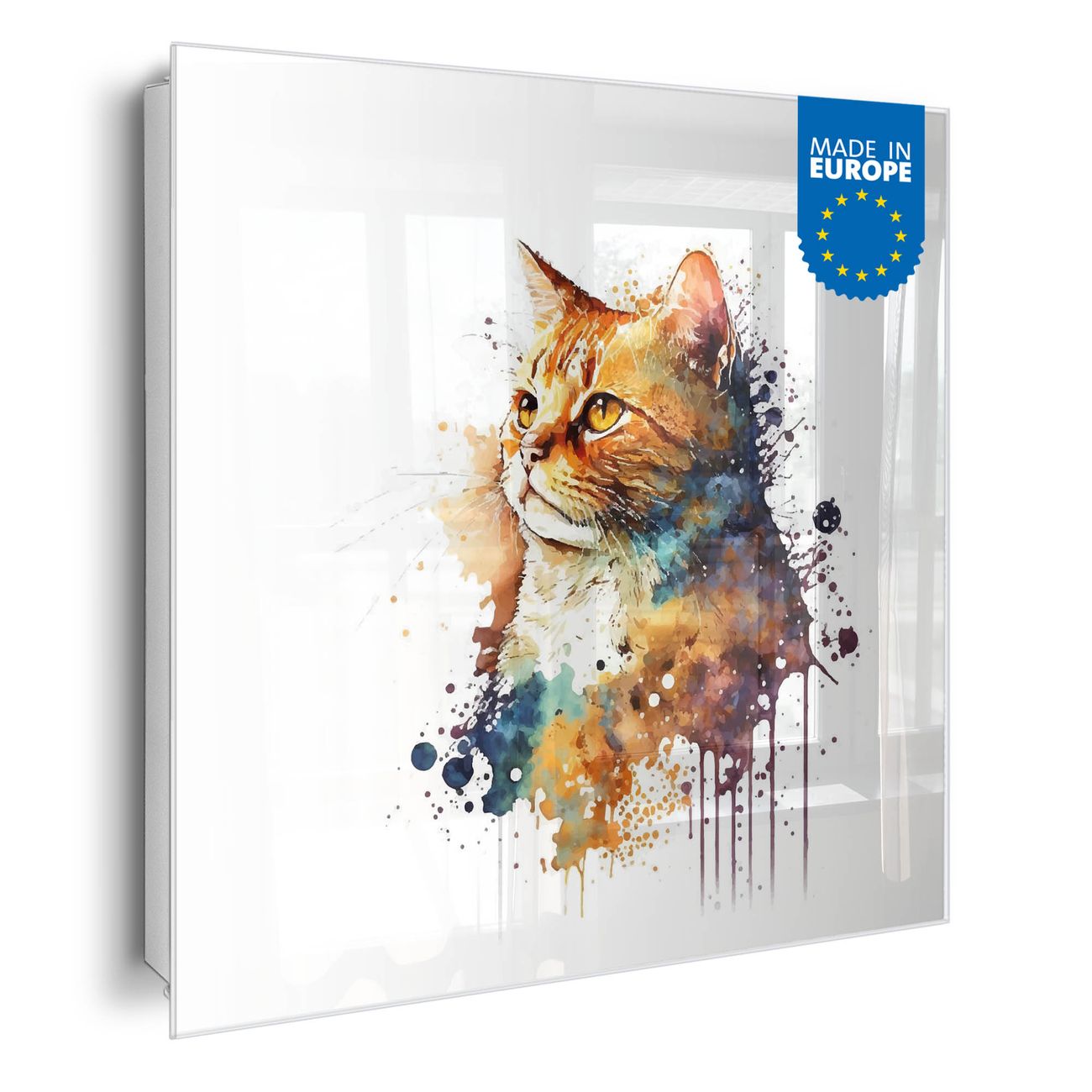 Schlüsselkasten Glas Motiv Katzenportrait in Aquarell