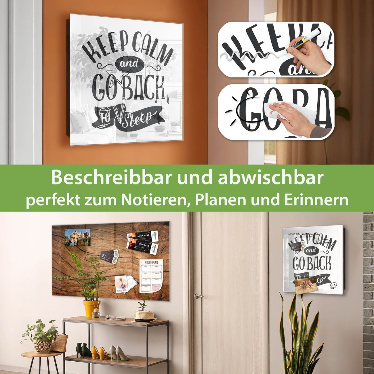 ✅ Magnetisch und mit Kreidestift beschreibbar, gehärtetes Glas, rechts angeschlagene TürOrdnung und Design in einem