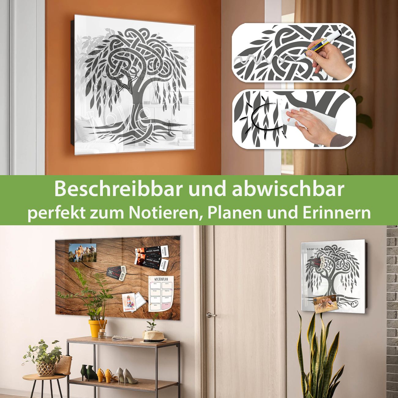 ✅ Magnetisch und mit Kreidestift beschreibbar, gehärtetes Glas, rechts angeschlagene TürOrdnung und Design in einem