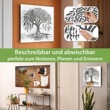 Bringe Ordnung und Eleganz in deinen Eingangsbereich mit dem banjado Schlüsselkasten Motiv Motiv Keltischer Baum des Lebens. Die moderne Schlüsselbox kombiniert funktionales Design mit hochwertiger Verarbeitung und wird so zu einem echten Hingucker in Flur, Büro oder Ferienwohnung. ✅ Stilvolle Schlüsselaufbewahrung mit Glasfront im Motiv Motiv Keltischer Baum des Lebens Der Design-Schlüsselkasten Motiv Motiv Keltischer Baum des Lebens bietet Platz für bis zu 50 Schlüssel, die auf 5 stabilen Reihen mit je 10 Haken übersichtlich verstaut werden. Mit seinen kompakten Maßen von 30 x 30 x 5 cm passt die Schlüsselbox perfekt auch in kleinere Räume. Der schwarz lackierte Stahlkorpus mit rechts angeschlagenem Türscharnier harmoniert mit der Glasfront und fügt sich nahtlos in jedes Wohnambiente ein. Ob als Schlüsselorganizer für Zuhause oder als praktische Lösung für Büros, Praxen und Gewerbe, der banjado Schlüsselkasten sorgt für Ordnung und Übersicht. Dank der magnetischen, mit Kreidestiften beschreibbaren Glasfront kannst du Notizen anheften oder Termine direkt auf der Oberfläche festhalten. Die Schlüsselbox Motiv Motiv Keltischer Baum des Lebens zur Wandmontage wird inklusive Befestigungsmaterial geliefert und ist schnell angebracht. So hast du deine Schlüssel jederzeit griffbereit und zugleich stilvoll verstaut. Mit diesem banjado Schlüsselkasten Motiv Motiv Keltischer Baum des Lebens kombinierst du praktische Aufbewahrung mit stilvollem Wohndesign. Ob privat oder geschäftlich, die Schlüsselbox sorgt für mehr Ordnung, Übersicht und ein wohnliches Ambiente.Vorteile im Überblick