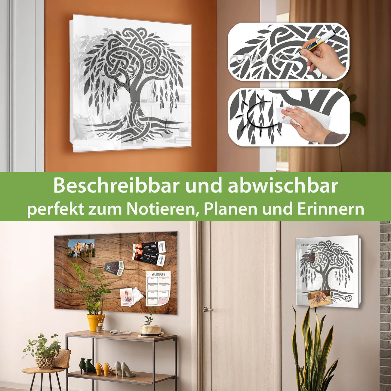 ✅ Magnetisch und mit Kreidestift beschreibbar, gehärtetes Glas, links angeschlagene TürOrdnung und Design in einem