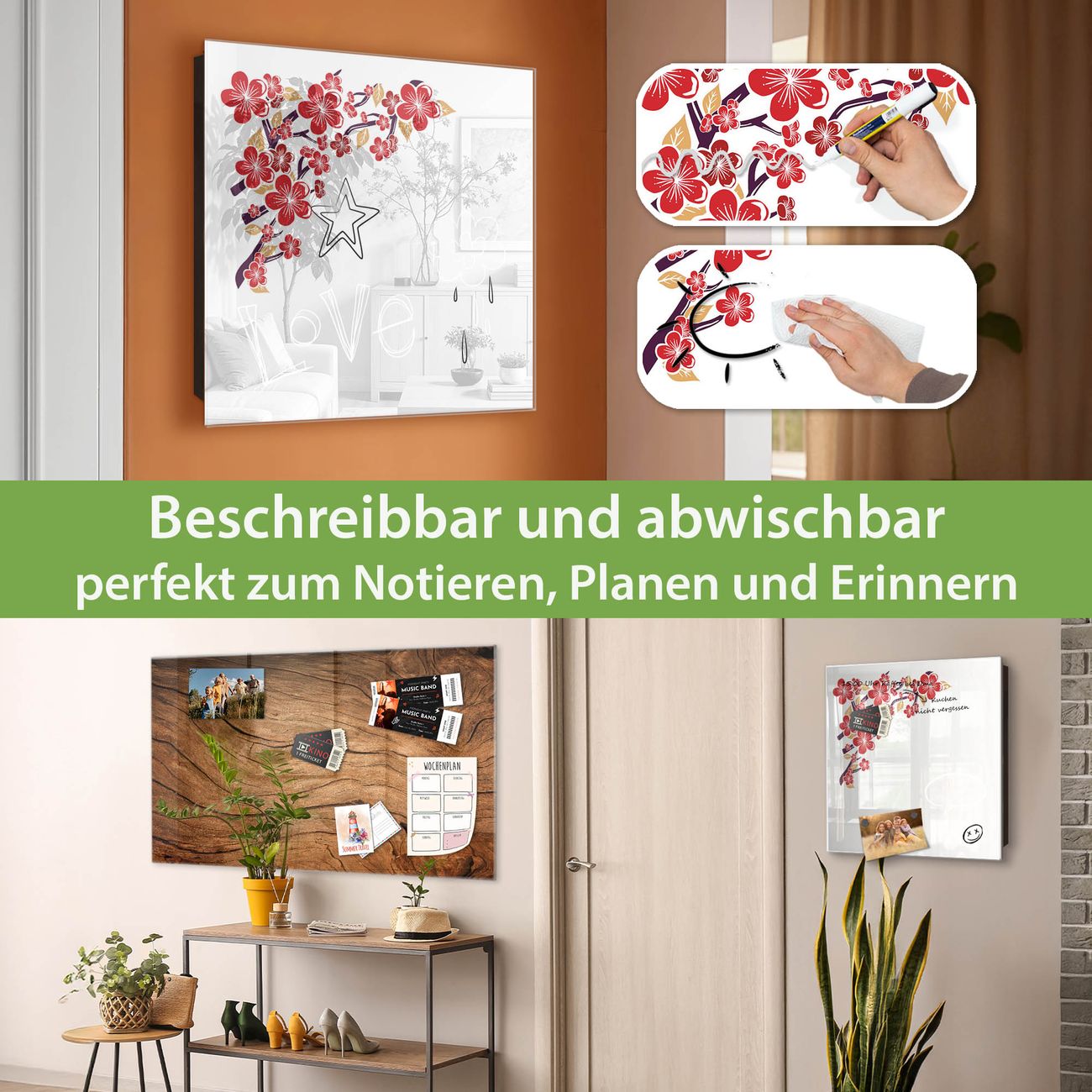 ✅ Magnetisch und mit Kreidestift beschreibbar, gehärtetes Glas, rechts angeschlagene TürOrdnung und Design in einem