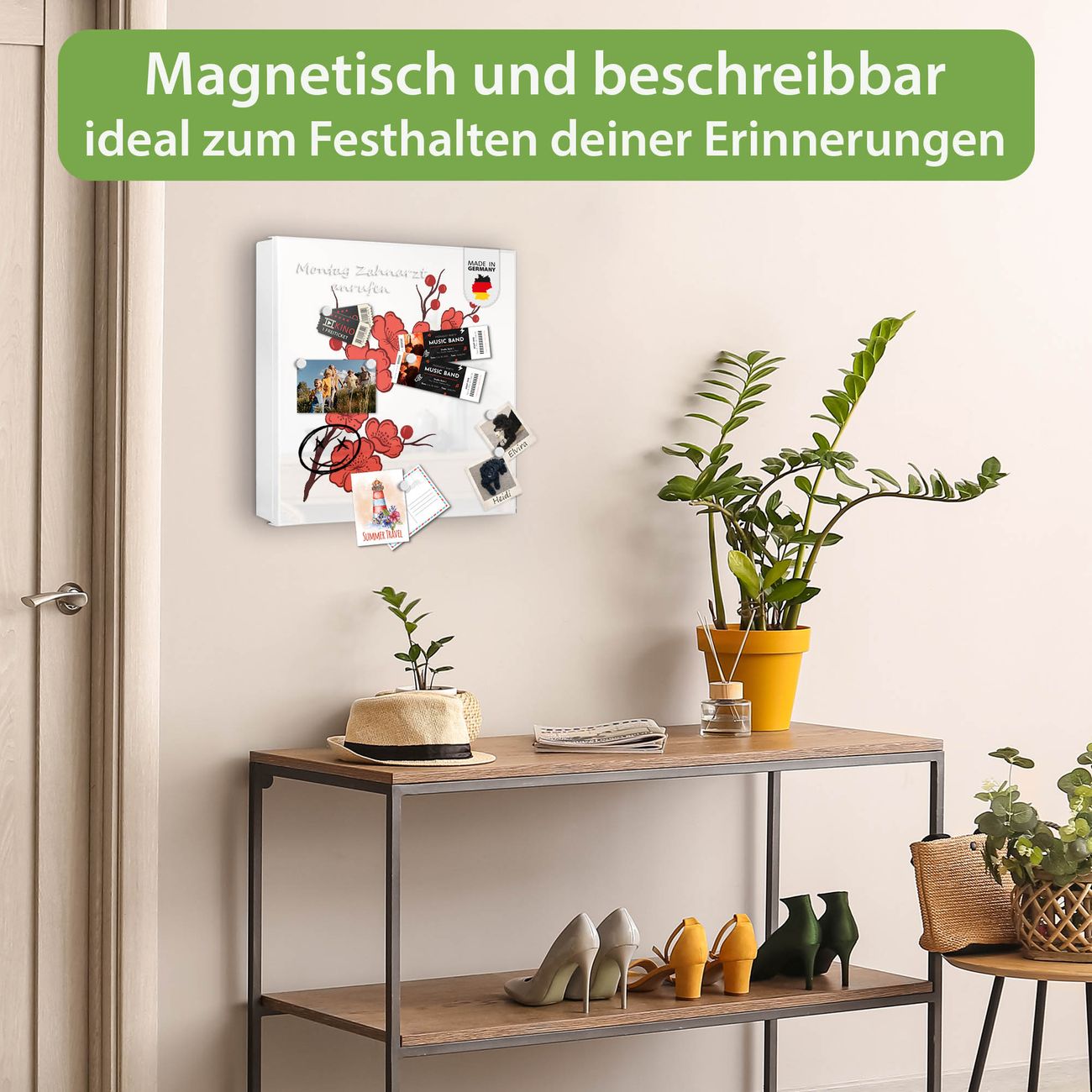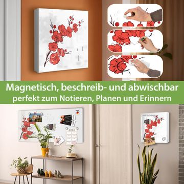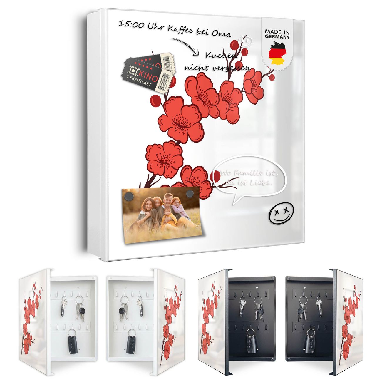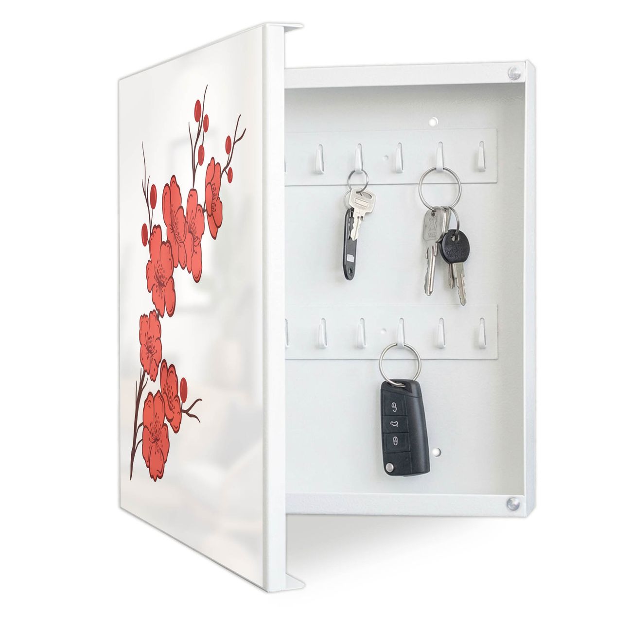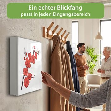 Bringe Ordnung und Eleganz in deinen Eingangsbereich mit dem banjado Schlüsselkasten Motiv Motiv Kirschblütenzweig. Die moderne Schlüsselbox kombiniert funktionales Design mit hochwertiger Verarbeitung und wird so zu einem echten Hingucker in Flur, Büro oder Ferienwohnung. ✅ Stilvolle Schlüsselaufbewahrung mit Motiv Motiv Kirschblütenzweig Der Design-Schlüsselkasten Motiv Motiv Kirschblütenzweig bietet Platz für bis zu 32 Schlüssel, die auf 4 stabilen Reihen mit je 8 Haken übersichtlich verstaut werden. Mit seinen kompakten Maßen von 30 x 30 x 5 cm passt die Schlüsselbox perfekt auch in kleinere Räume. Der weiß lackierte Stahlkorpus mit links angeschlagenem Türscharnier harmoniert mit gedruckten Folie auf der Front und fügt sich nahtlos in jedes Wohnambiente ein. Ob als Schlüsselorganizer für Zuhause oder als praktische Lösung für Büros, Praxen und Gewerbe, der banjado Schlüsselkasten sorgt für Ordnung und Übersicht. Dank der magnetischen, mit Kreidestiften beschreibbaren Folie auf der Front kannst du Notizen anheften oder Termine direkt auf der Oberfläche festhalten. Die Schlüsselbox Motiv Motiv Kirschblütenzweig zur Wandmontage wird inklusive Befestigungsmaterial geliefert und ist schnell angebracht. So hast du deine Schlüssel jederzeit griffbereit und zugleich stilvoll verstaut. Mit diesem banjado Schlüsselkasten Motiv Motiv Kirschblütenzweig kombinierst du praktische Aufbewahrung mit stilvollem Wohndesign. Ob privat oder geschäftlich, die Schlüsselbox sorgt für mehr Ordnung, Übersicht und ein wohnliches Ambiente.Vorteile im Überblick