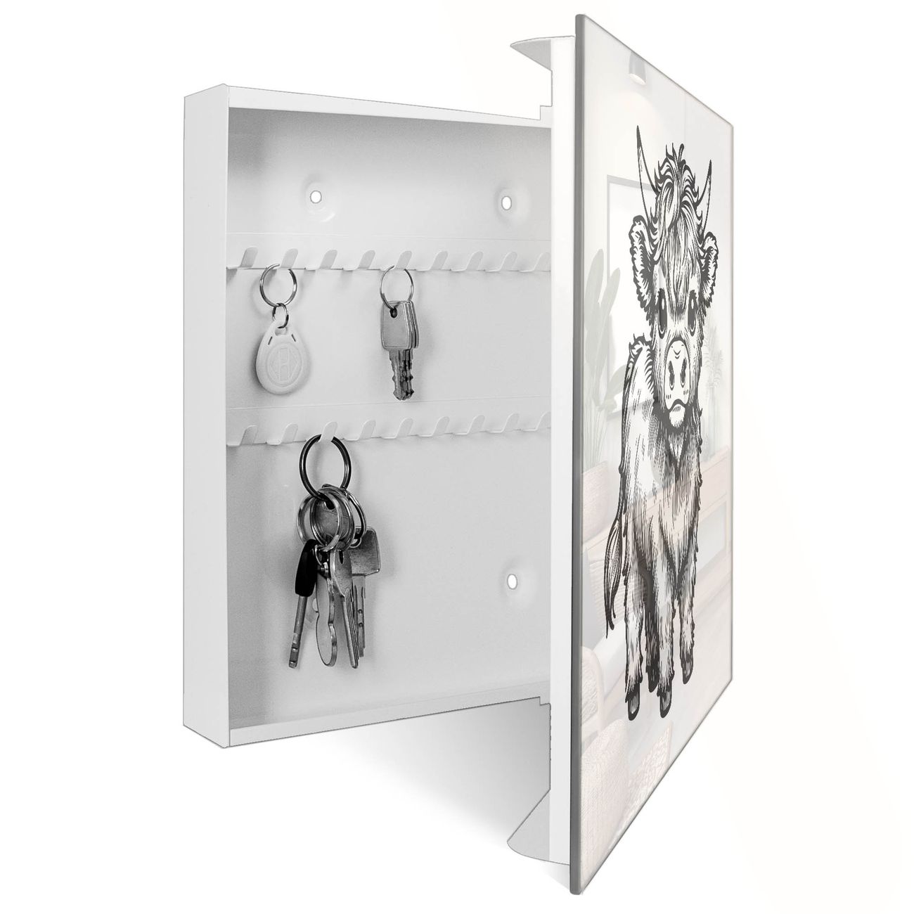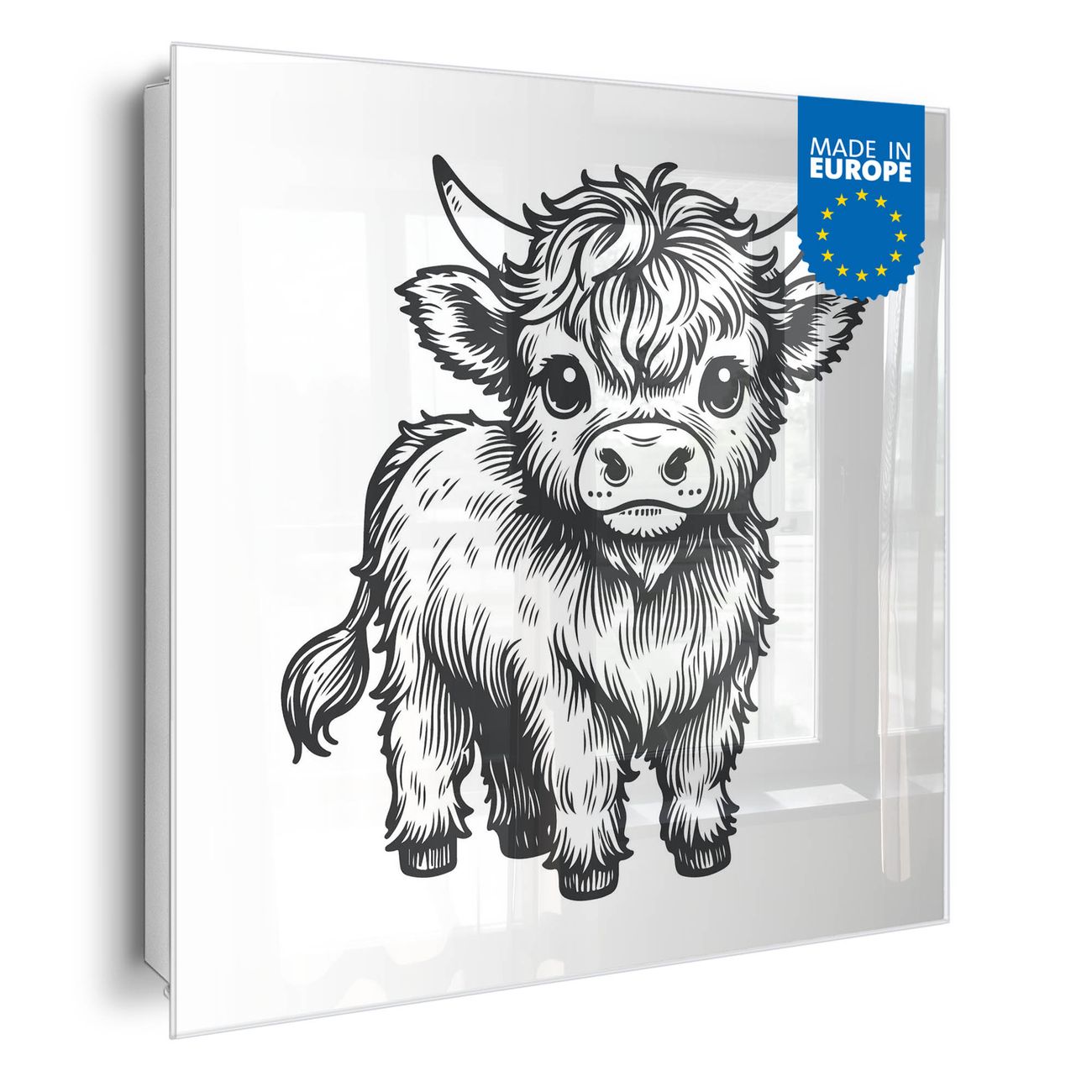 Schlüsselkasten Glas Motiv Kleines Hochlandrind Zeichnung