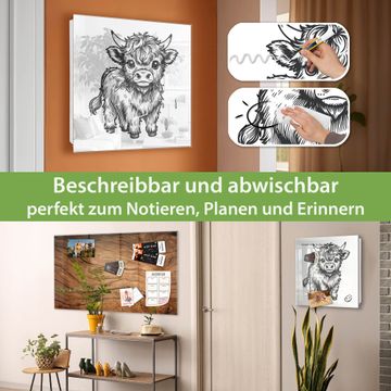 Bringe Ordnung und Eleganz in deinen Eingangsbereich mit dem banjado Schlüsselkasten Motiv Motiv Kleines Hochlandrind. Die moderne Schlüsselbox kombiniert funktionales Design mit hochwertiger Verarbeitung und wird so zu einem echten Hingucker in Flur, Büro oder Ferienwohnung. ✅ Stilvolle Schlüsselaufbewahrung mit Glasfront im Motiv Motiv Kleines Hochlandrind Der Design-Schlüsselkasten Motiv Motiv Kleines Hochlandrind bietet Platz für bis zu 50 Schlüssel, die auf 5 stabilen Reihen mit je 10 Haken übersichtlich verstaut werden. Mit seinen kompakten Maßen von 30 x 30 x 5 cm passt die Schlüsselbox perfekt auch in kleinere Räume. Der weiß lackierte Stahlkorpus mit rechts angeschlagenem Türscharnier harmoniert mit der Glasfront und fügt sich nahtlos in jedes Wohnambiente ein. Ob als Schlüsselorganizer für Zuhause oder als praktische Lösung für Büros, Praxen und Gewerbe, der banjado Schlüsselkasten sorgt für Ordnung und Übersicht. Dank der magnetischen, mit Kreidestiften beschreibbaren Glasfront kannst du Notizen anheften oder Termine direkt auf der Oberfläche festhalten. Die Schlüsselbox Motiv Motiv Kleines Hochlandrind zur Wandmontage wird inklusive Befestigungsmaterial geliefert und ist schnell angebracht. So hast du deine Schlüssel jederzeit griffbereit und zugleich stilvoll verstaut. Mit diesem banjado Schlüsselkasten Motiv Motiv Kleines Hochlandrind kombinierst du praktische Aufbewahrung mit stilvollem Wohndesign. Ob privat oder geschäftlich, die Schlüsselbox sorgt für mehr Ordnung, Übersicht und ein wohnliches Ambiente.Vorteile im Überblick