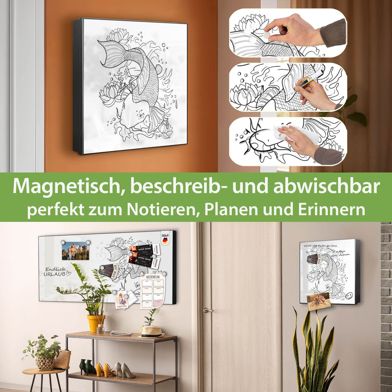 ✅ Magnetisch und mit Kreidestift beschreibbar, rechts angeschlagene TürOrdnung und Design in einem