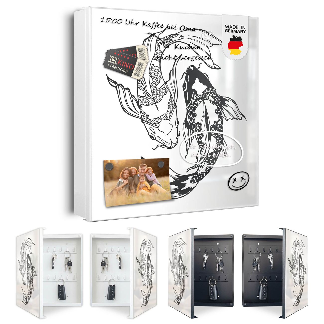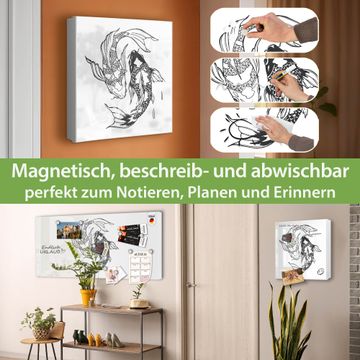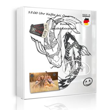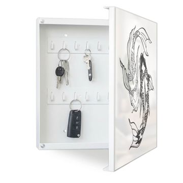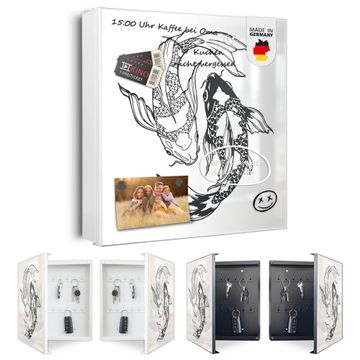 Bringe Ordnung und Eleganz in deinen Eingangsbereich mit dem banjado Schlüsselkasten Motiv Motiv Koi Paar 3. Die moderne Schlüsselbox kombiniert funktionales Design mit hochwertiger Verarbeitung und wird so zu einem echten Hingucker in Flur, Büro oder Ferienwohnung. ✅ Stilvolle Schlüsselaufbewahrung mit Motiv Motiv Koi Paar 3 Der Design-Schlüsselkasten Motiv Motiv Koi Paar 3 bietet Platz für bis zu 32 Schlüssel, die auf 4 stabilen Reihen mit je 8 Haken übersichtlich verstaut werden. Mit seinen kompakten Maßen von 30 x 30 x 5 cm passt die Schlüsselbox perfekt auch in kleinere Räume. Der weiß lackierte Stahlkorpus mit rechts angeschlagenem Türscharnier harmoniert mit gedruckten Folie auf der Front und fügt sich nahtlos in jedes Wohnambiente ein. Ob als Schlüsselorganizer für Zuhause oder als praktische Lösung für Büros, Praxen und Gewerbe, der banjado Schlüsselkasten sorgt für Ordnung und Übersicht. Dank der magnetischen, mit Kreidestiften beschreibbaren Folie auf der Front kannst du Notizen anheften oder Termine direkt auf der Oberfläche festhalten. Die Schlüsselbox Motiv Motiv Koi Paar 3 zur Wandmontage wird inklusive Befestigungsmaterial geliefert und ist schnell angebracht. So hast du deine Schlüssel jederzeit griffbereit und zugleich stilvoll verstaut. Mit diesem banjado Schlüsselkasten Motiv Motiv Koi Paar 3 kombinierst du praktische Aufbewahrung mit stilvollem Wohndesign. Ob privat oder geschäftlich, die Schlüsselbox sorgt für mehr Ordnung, Übersicht und ein wohnliches Ambiente.Vorteile im Überblick