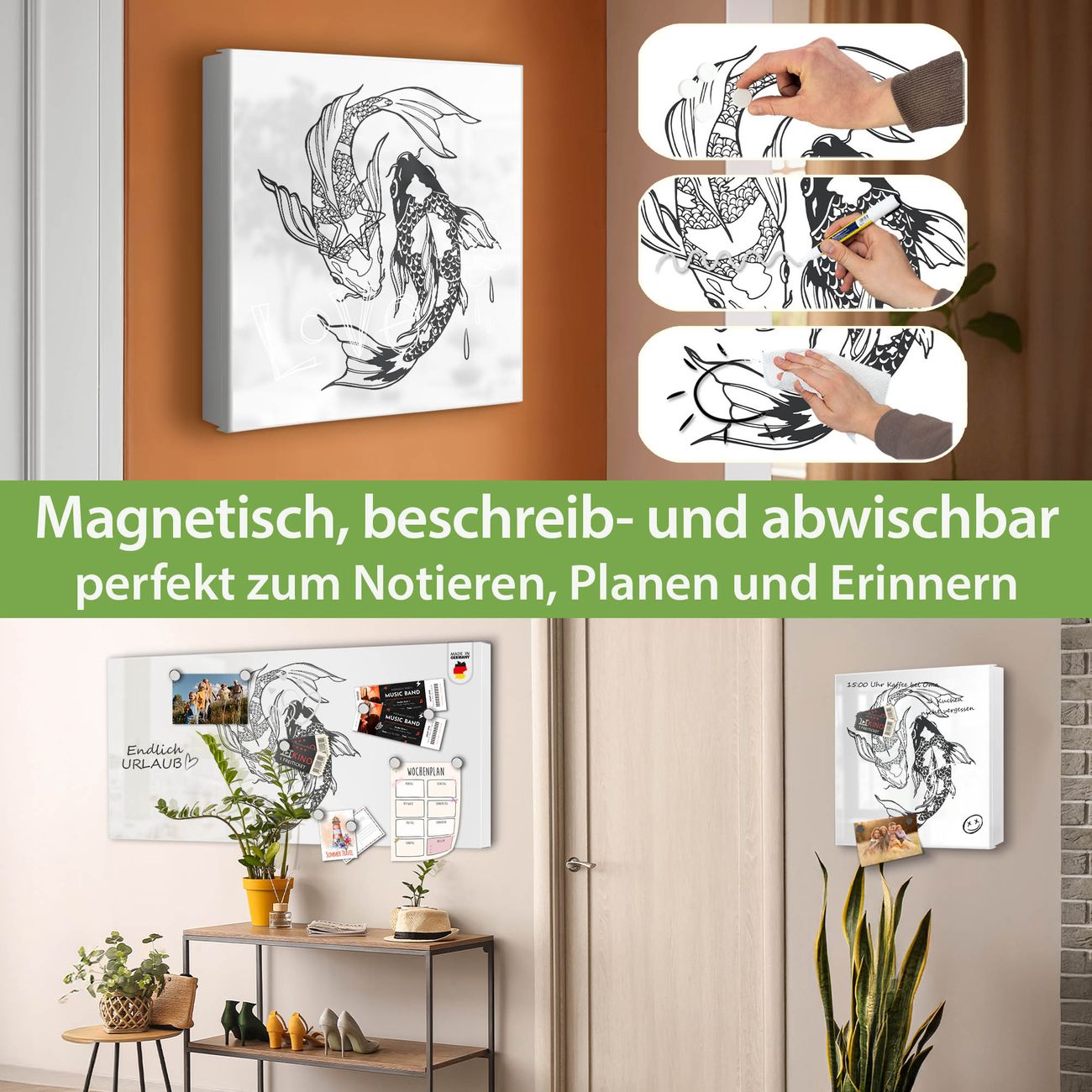 ✅ Magnetisch und mit Kreidestift beschreibbar, rechts angeschlagene TürOrdnung und Design in einem