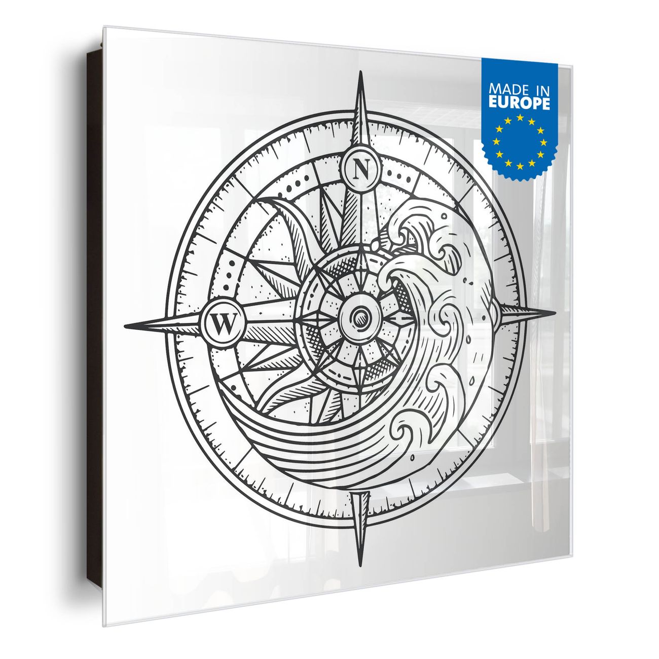 Schlüsselkasten Glas Motiv Kompass 2