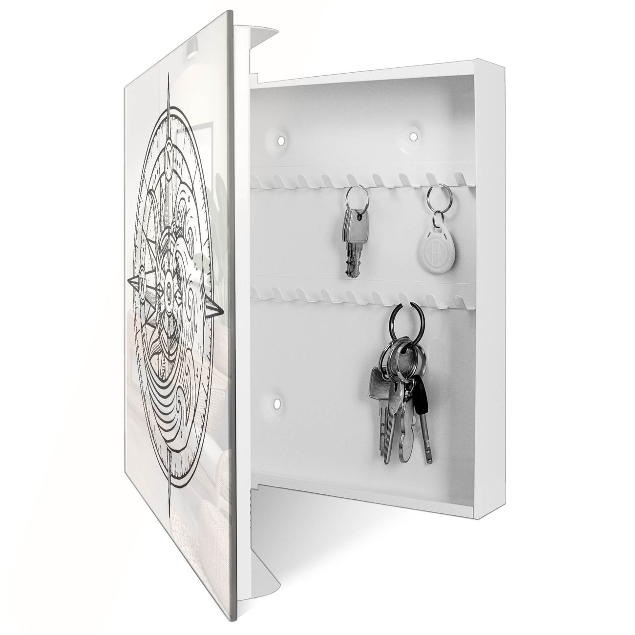 Schlüsselkasten Glas Motiv Kompass 2