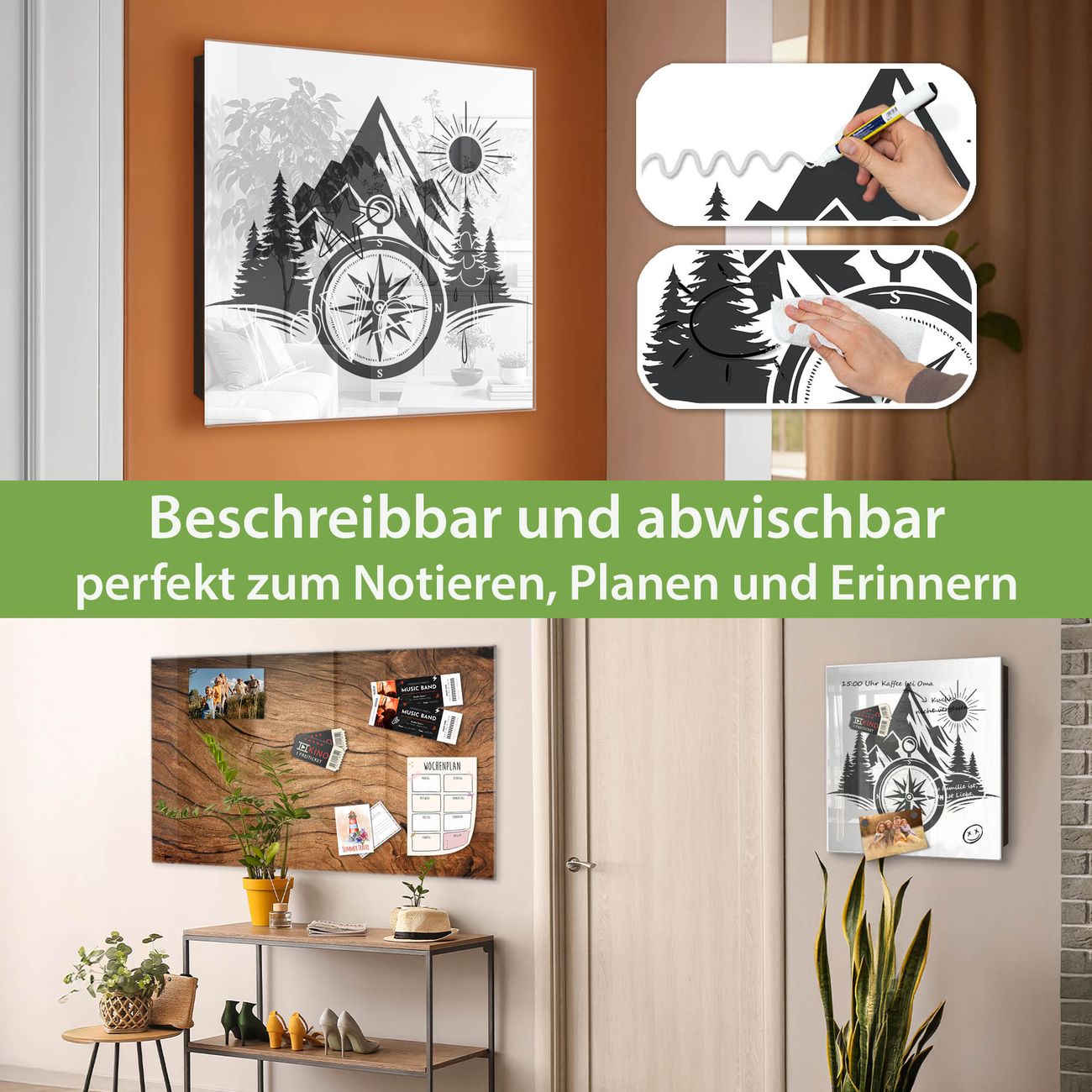 ✅ Magnetisch und mit Kreidestift beschreibbar, gehärtetes Glas, rechts angeschlagene TürOrdnung und Design in einem