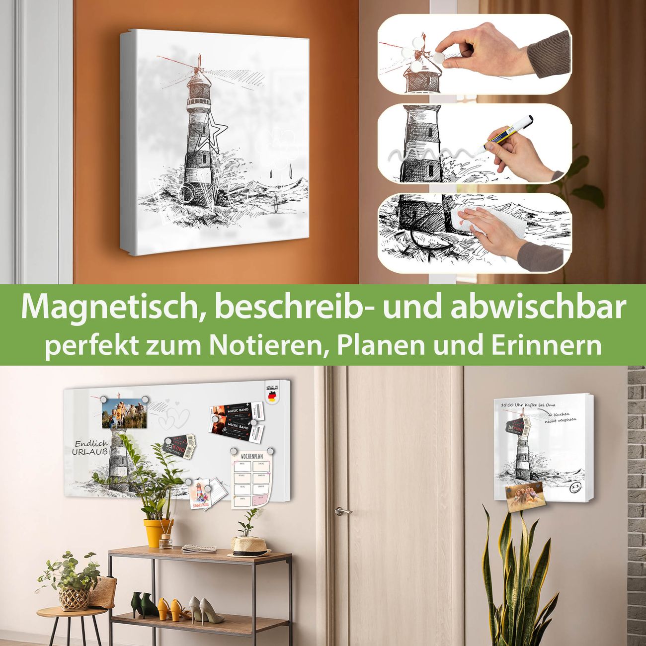 ✅ Magnetisch und mit Kreidestift beschreibbar, links angeschlagene TürOrdnung und Design in einem