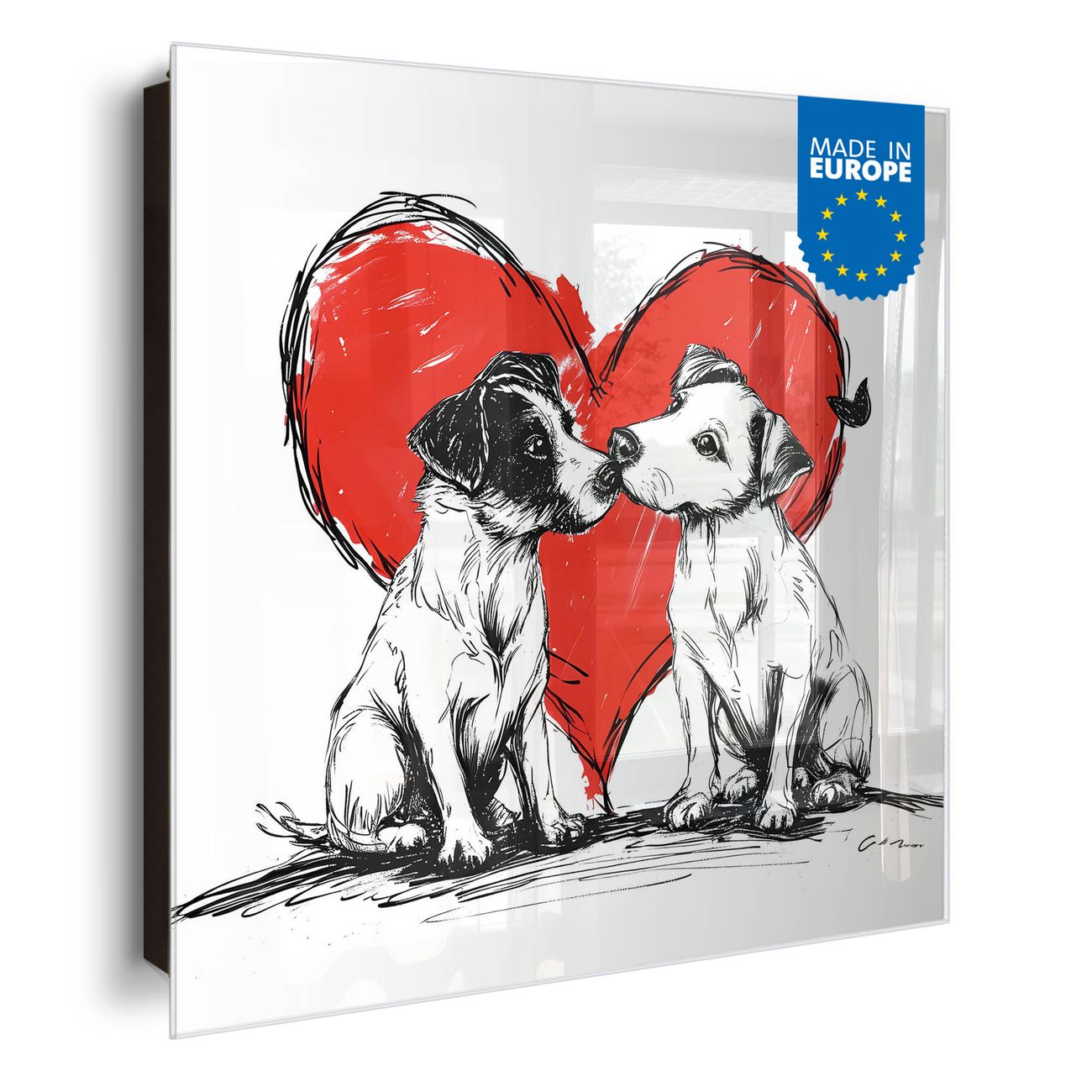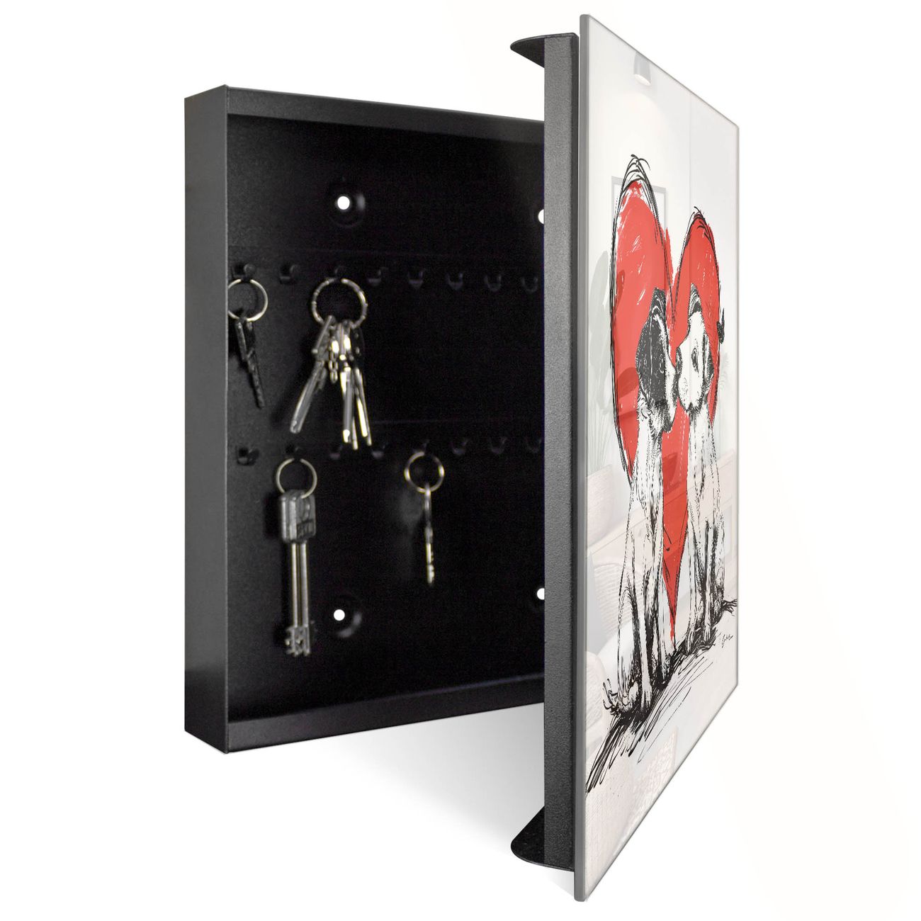 Schlüsselkasten Glas Motiv Liebende Hunde