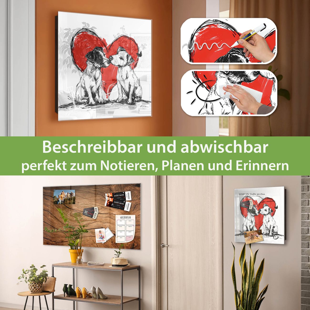 ✅ Magnetisch und mit Kreidestift beschreibbar, gehärtetes Glas, rechts angeschlagene TürOrdnung und Design in einem