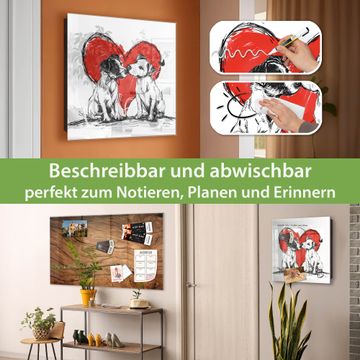Bringe Ordnung und Eleganz in deinen Eingangsbereich mit dem banjado Schlüsselkasten Motiv Motiv Liebende Hunde. Die moderne Schlüsselbox kombiniert funktionales Design mit hochwertiger Verarbeitung und wird so zu einem echten Hingucker in Flur, Büro oder Ferienwohnung. ✅ Stilvolle Schlüsselaufbewahrung mit Glasfront im Motiv Motiv Liebende Hunde Der Design-Schlüsselkasten Motiv Motiv Liebende Hunde bietet Platz für bis zu 50 Schlüssel, die auf 5 stabilen Reihen mit je 10 Haken übersichtlich verstaut werden. Mit seinen kompakten Maßen von 30 x 30 x 5 cm passt die Schlüsselbox perfekt auch in kleinere Räume. Der schwarz lackierte Stahlkorpus mit rechts angeschlagenem Türscharnier harmoniert mit der Glasfront und fügt sich nahtlos in jedes Wohnambiente ein. Ob als Schlüsselorganizer für Zuhause oder als praktische Lösung für Büros, Praxen und Gewerbe, der banjado Schlüsselkasten sorgt für Ordnung und Übersicht. Dank der magnetischen, mit Kreidestiften beschreibbaren Glasfront kannst du Notizen anheften oder Termine direkt auf der Oberfläche festhalten. Die Schlüsselbox Motiv Motiv Liebende Hunde zur Wandmontage wird inklusive Befestigungsmaterial geliefert und ist schnell angebracht. So hast du deine Schlüssel jederzeit griffbereit und zugleich stilvoll verstaut. Mit diesem banjado Schlüsselkasten Motiv Motiv Liebende Hunde kombinierst du praktische Aufbewahrung mit stilvollem Wohndesign. Ob privat oder geschäftlich, die Schlüsselbox sorgt für mehr Ordnung, Übersicht und ein wohnliches Ambiente.Vorteile im Überblick