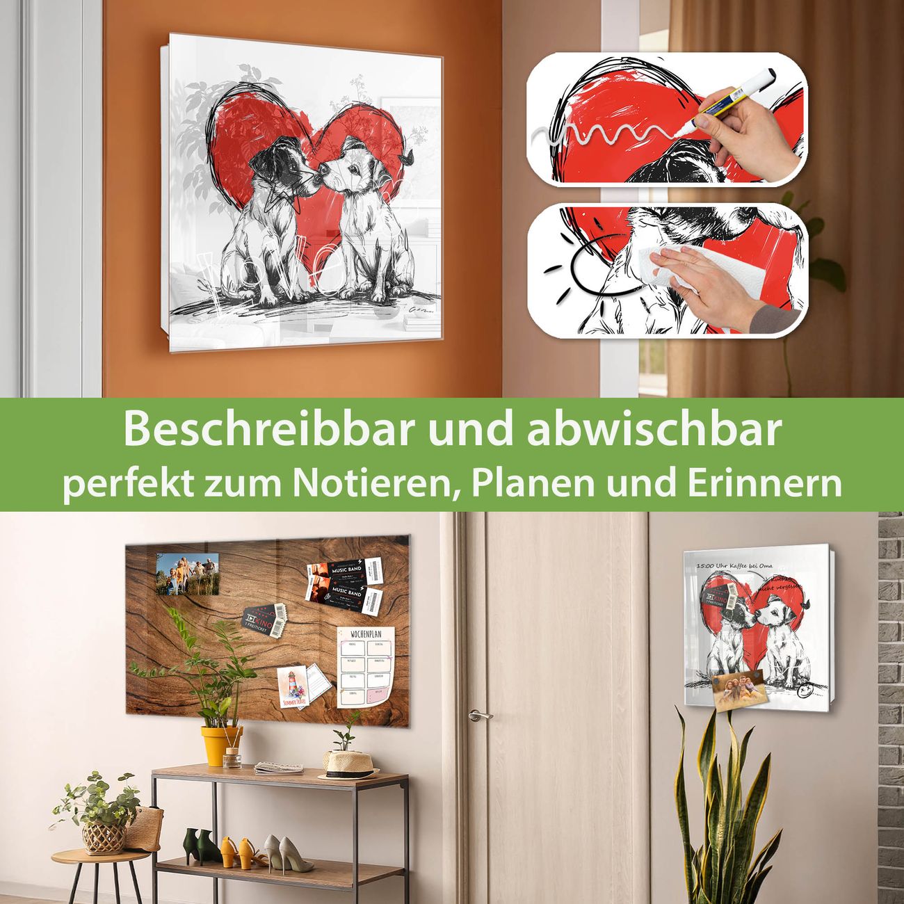 ✅ Magnetisch und mit Kreidestift beschreibbar, gehärtetes Glas, rechts angeschlagene TürOrdnung und Design in einem