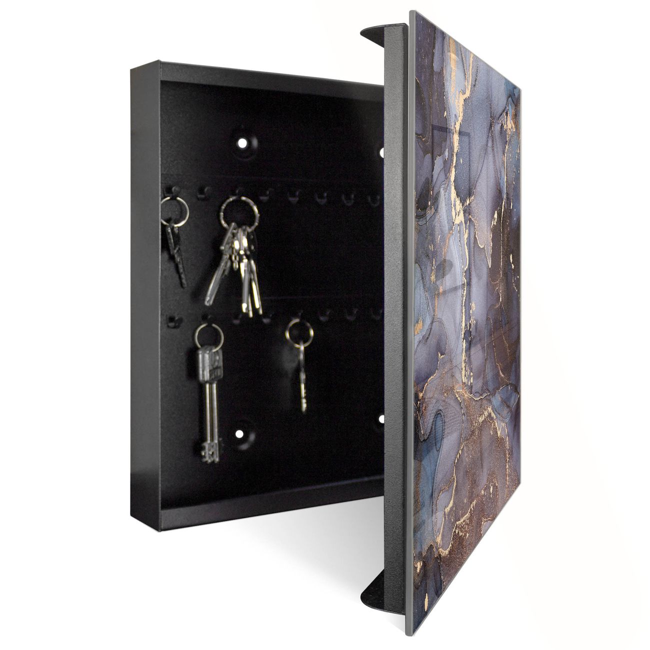 Schlüsselkasten Glas Motiv Lila Marmor mit Gold 1