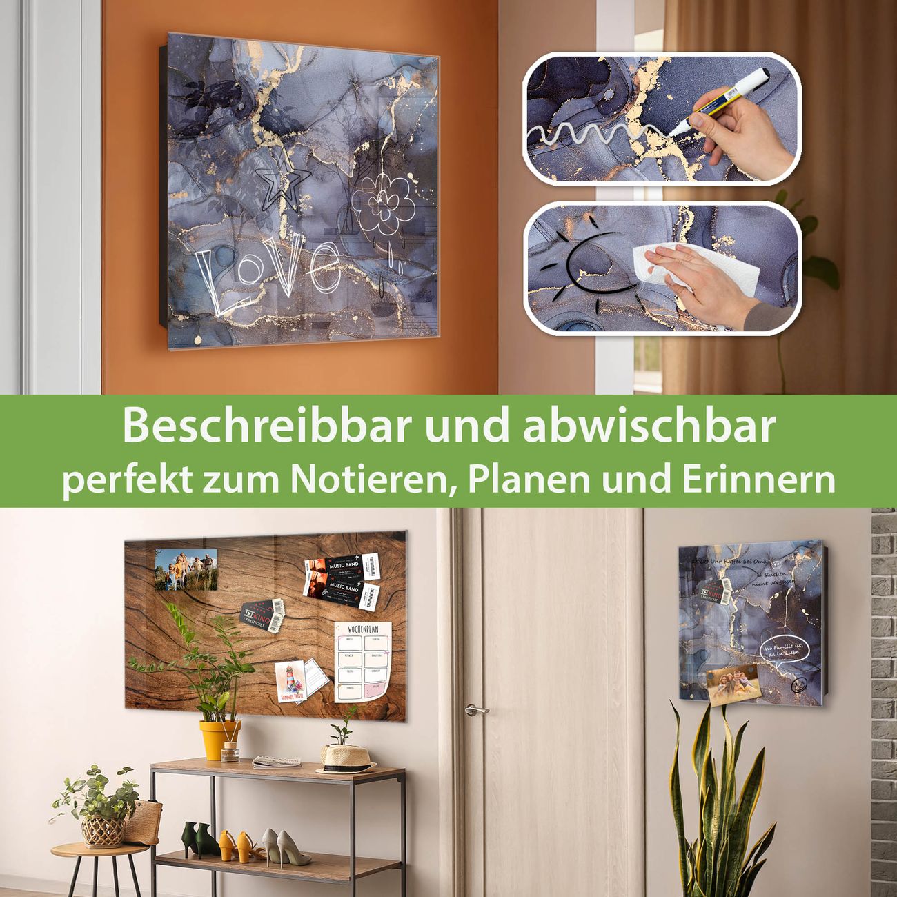 ✅ Magnetisch und mit Kreidestift beschreibbar, gehärtetes Glas, rechts angeschlagene TürOrdnung und Design in einem